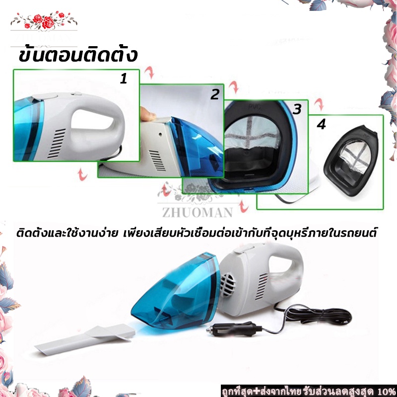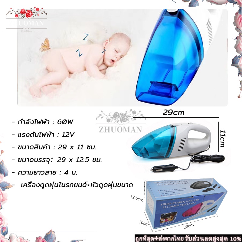 เครื่องดูดฝุ่นในรถ เครื่องดูดฝุ่นขนาดเล็ก แรงดูดทรงพลัง ขจัดฝุ่นละออง ขยะ และเศษวัสดุต่างๆได้รวดเร็วง่ายดาย