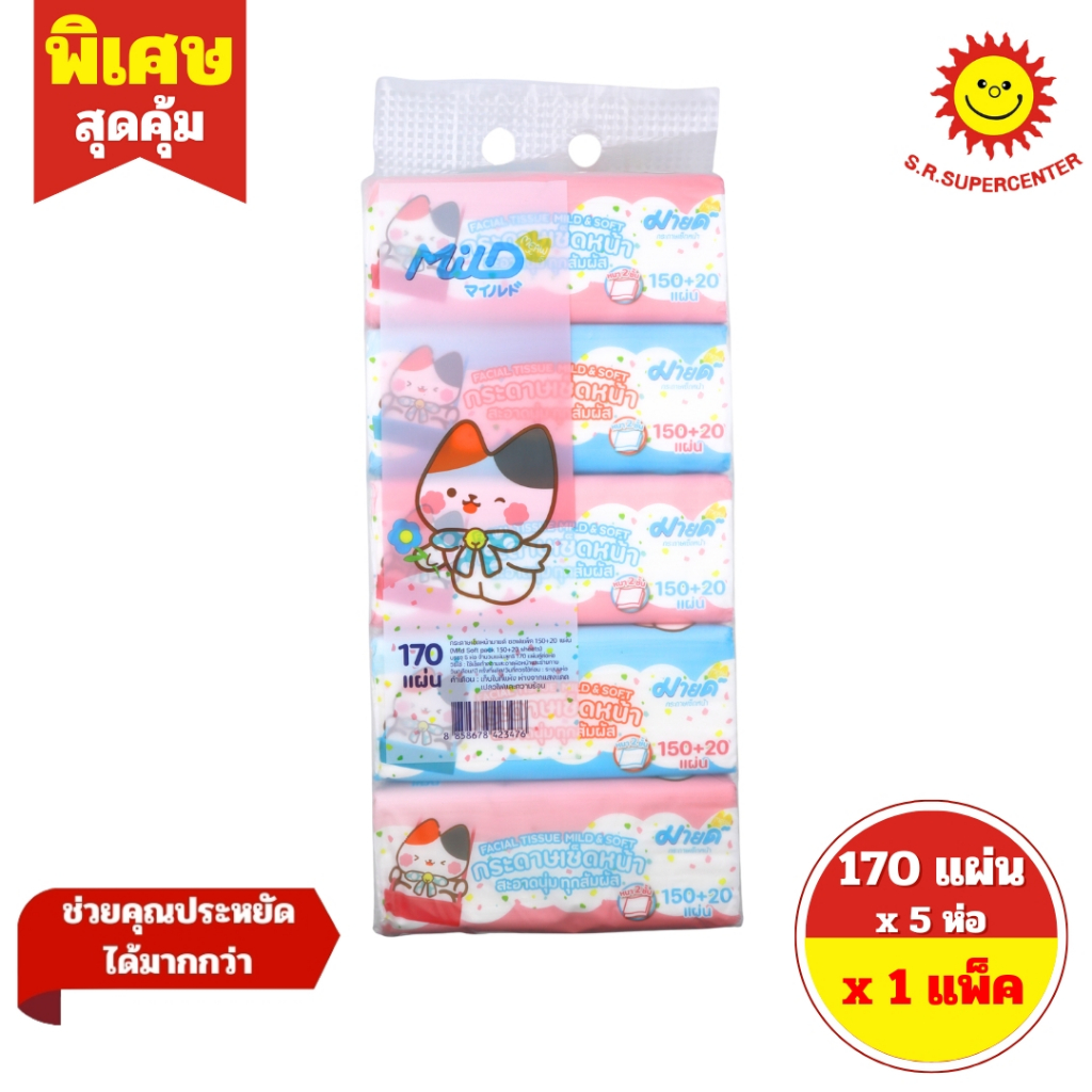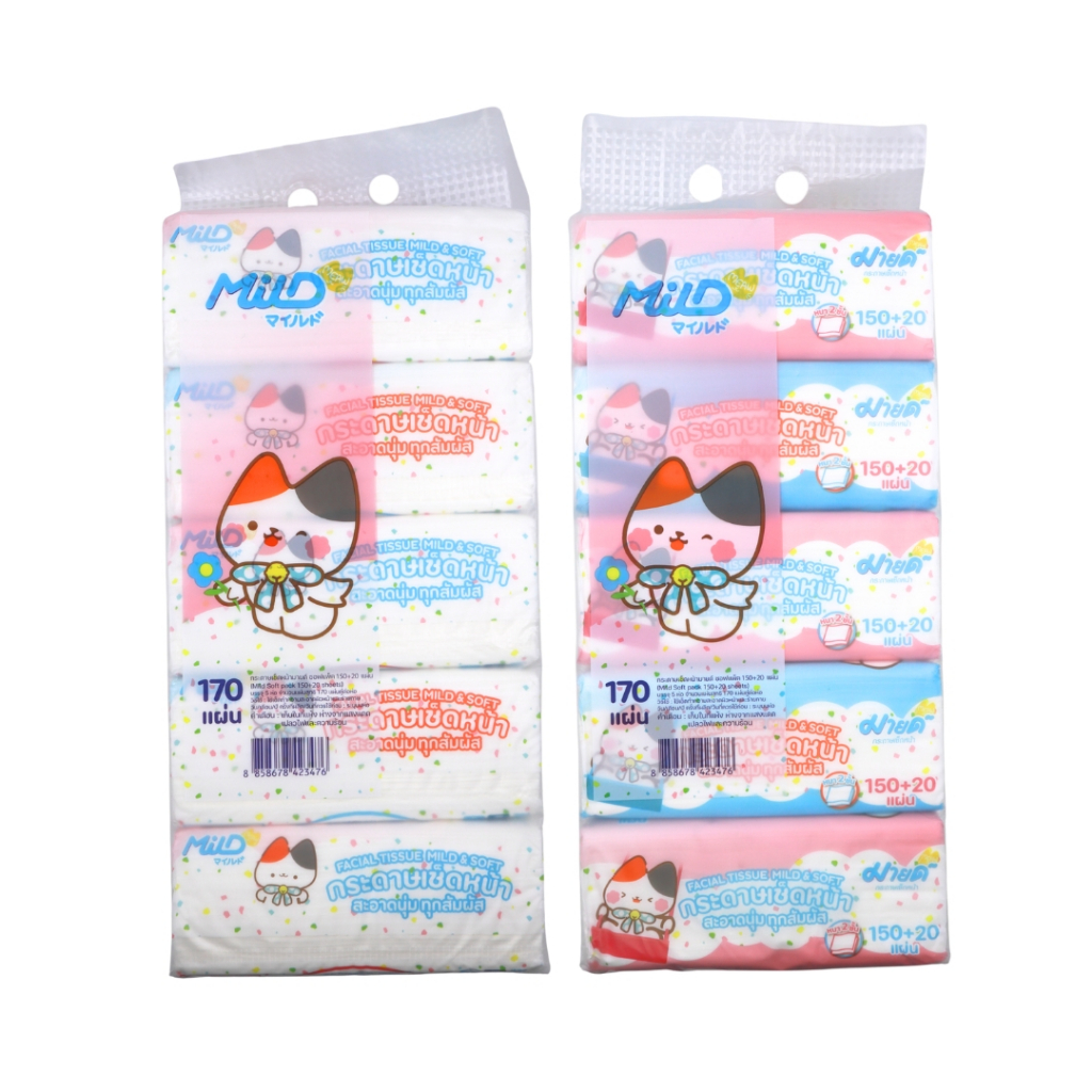 [ 1 แพ็ค ] MiLD มายด์ เหมียว กระดาษเช็ดหน้า ปริมาณ 170 แผ่น x 1 หิ้ว ( 1 แพ็ค )
