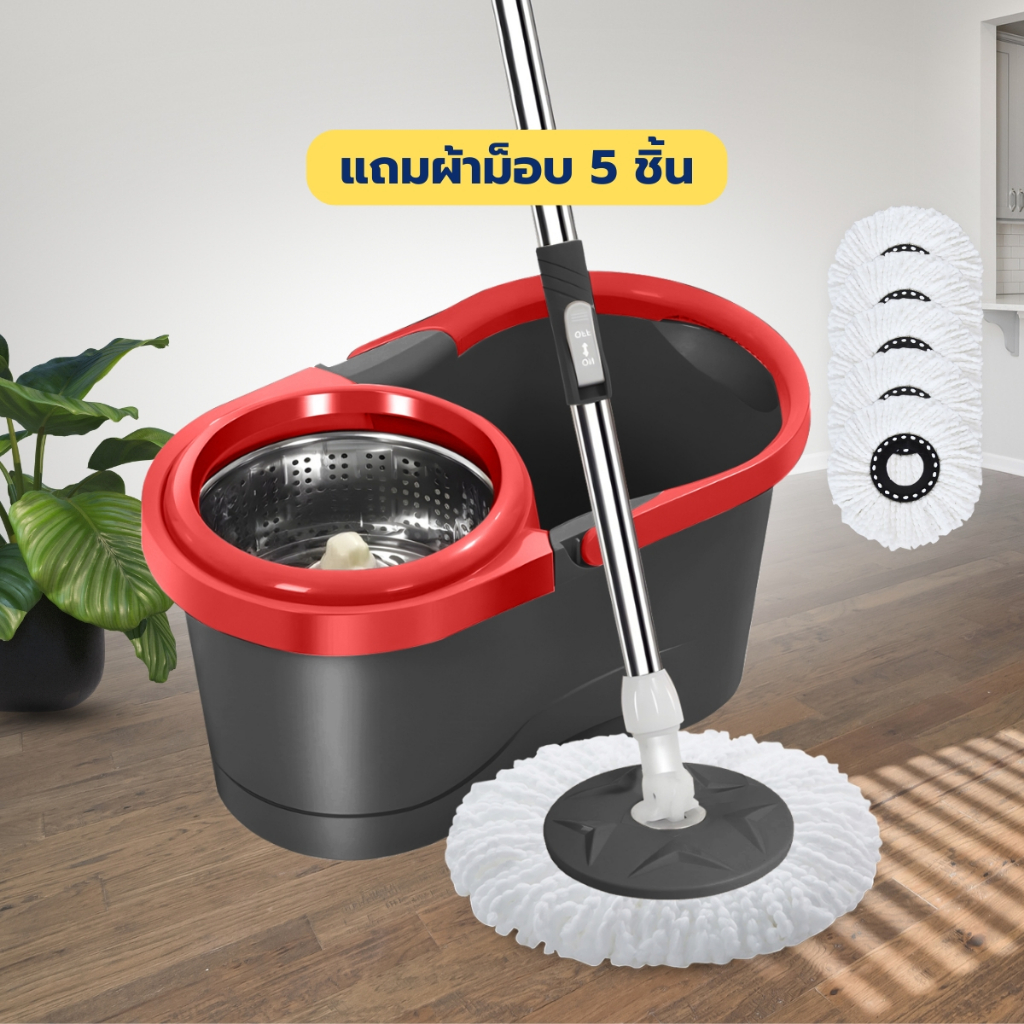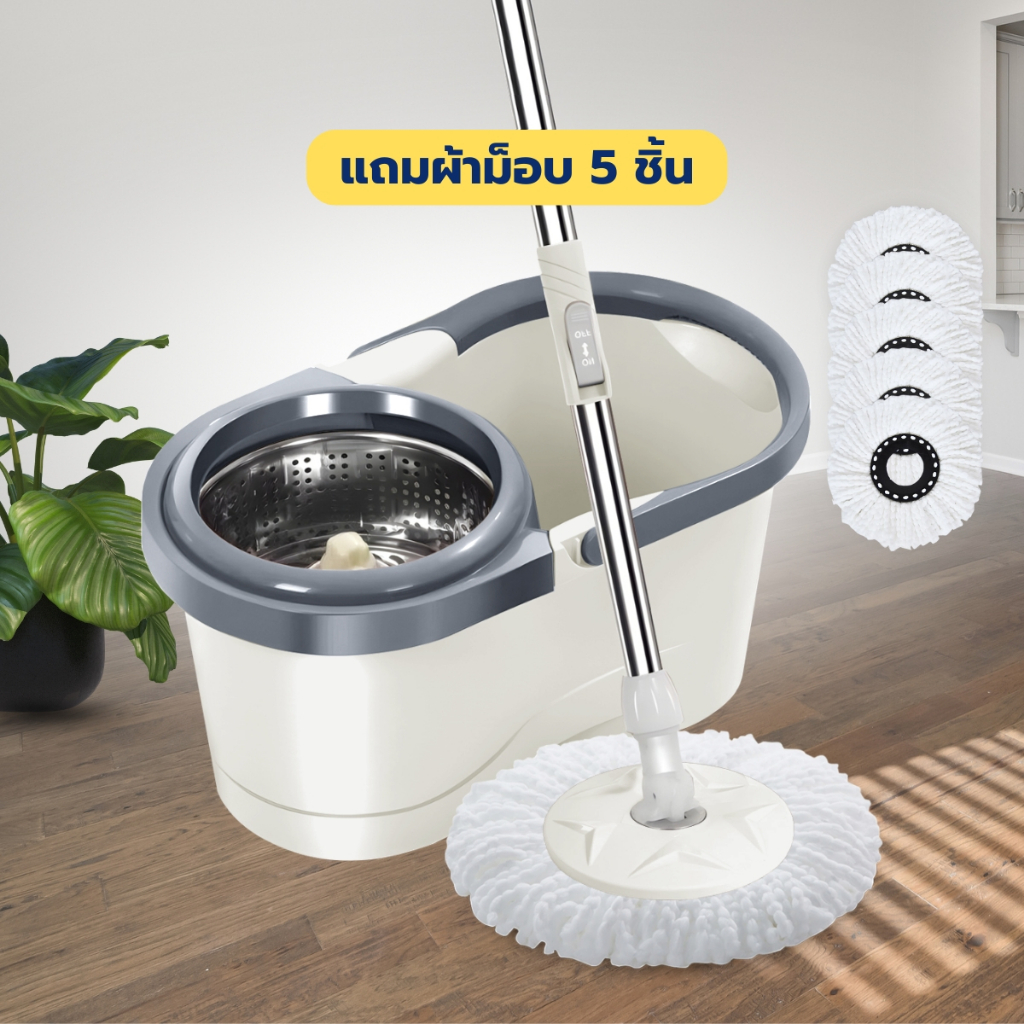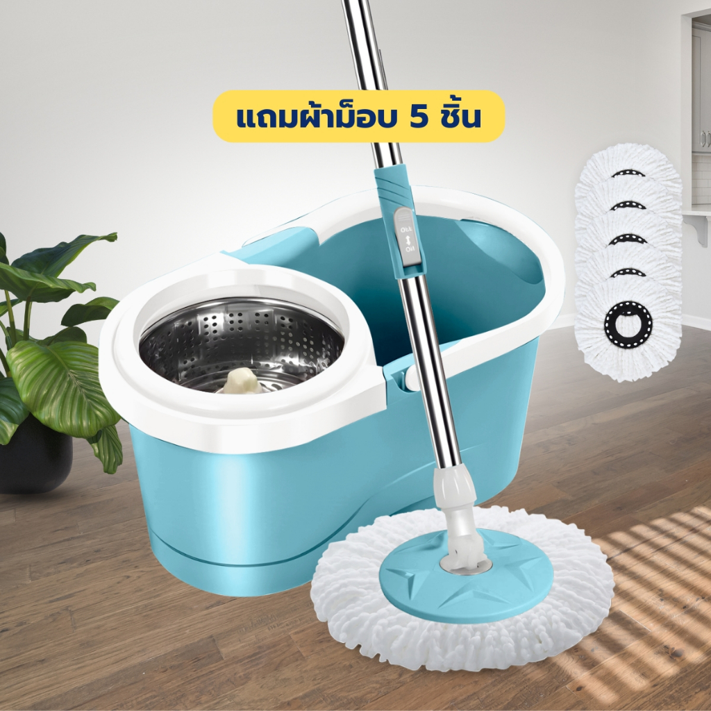 ถังปั่ นไม้ถูพื้น ถังปั่นสแตนเลส ชุดถังไม้ม้อบทำความสะอาดถูพื้น ม็อบถูพื้น