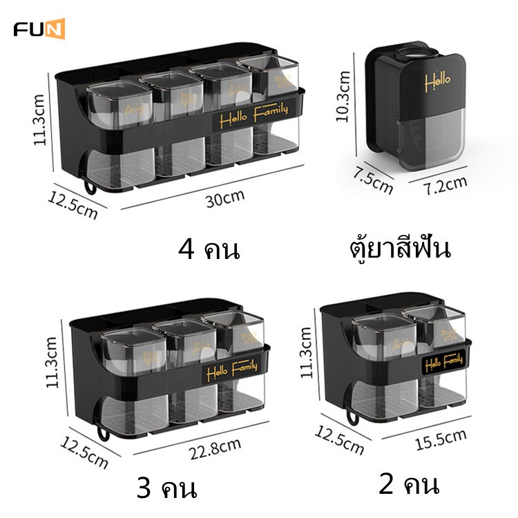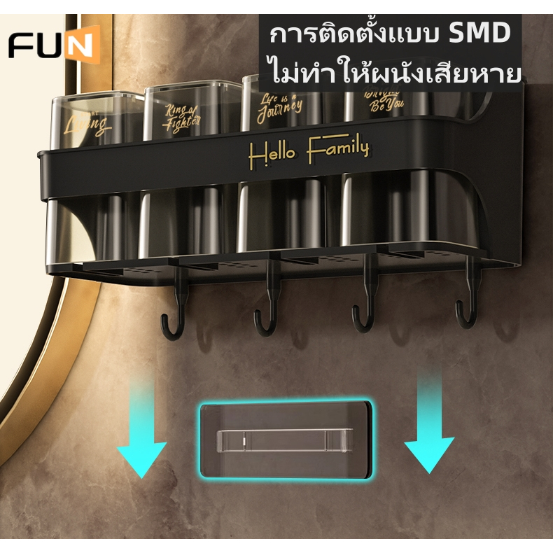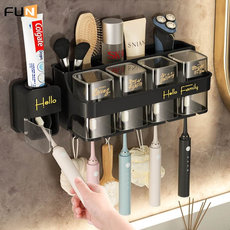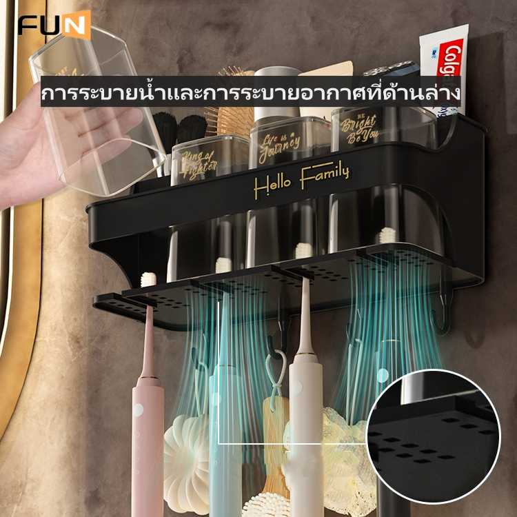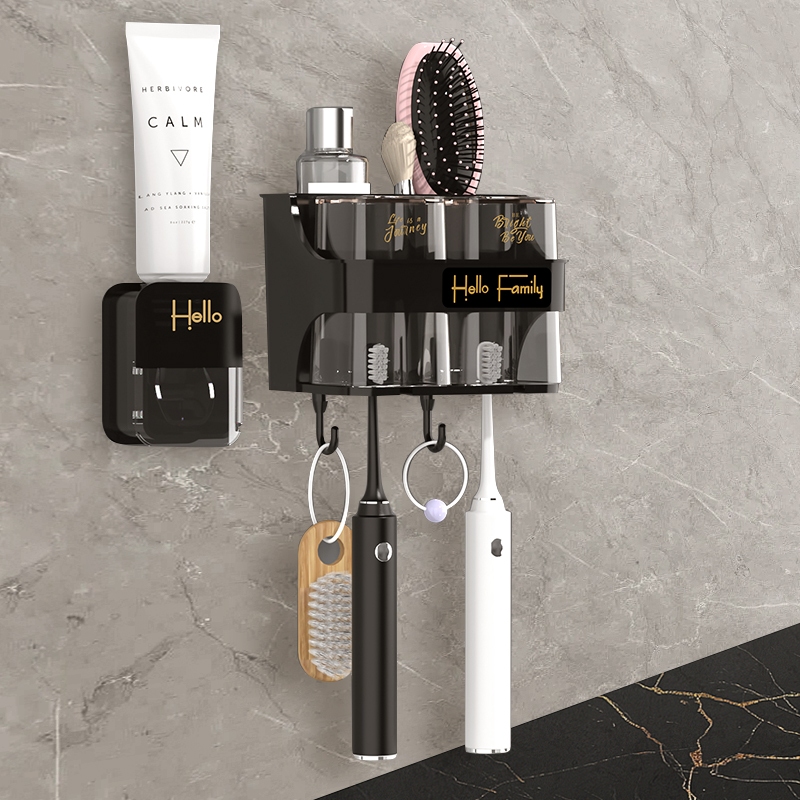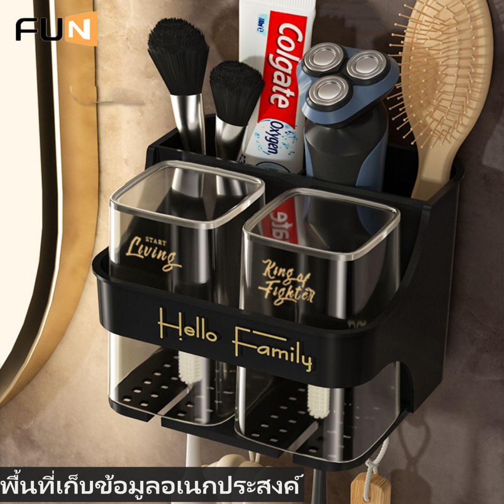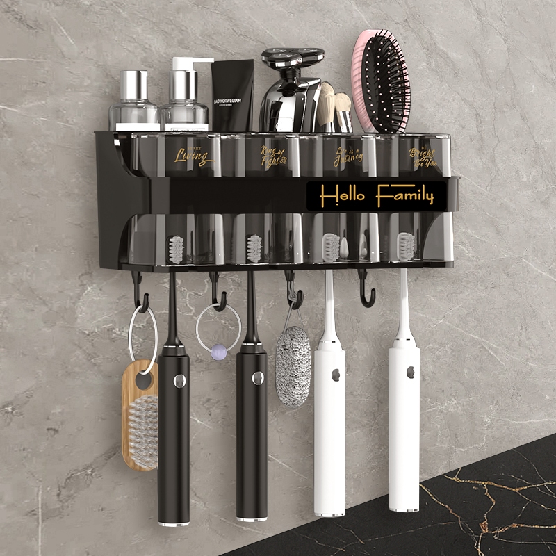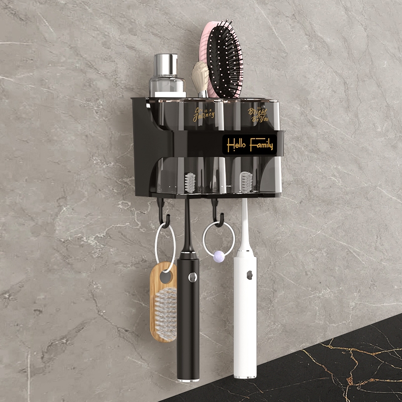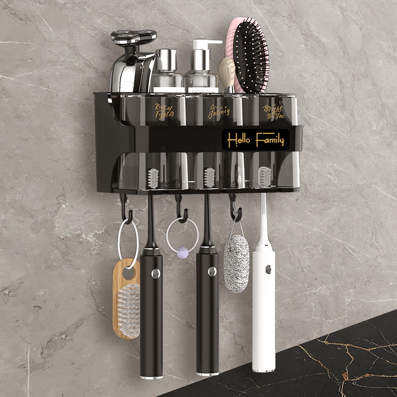 [FUN] ผู้ถือแปรงสีฟันสีดําเล็บฟรีห้องน้ําชั้นวาง2ถ้วย/3ถ้วย/4ถ้วยจุใจครอบครัวที่แตกต่างกันช่องปากใช้