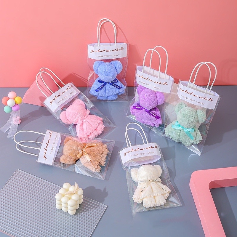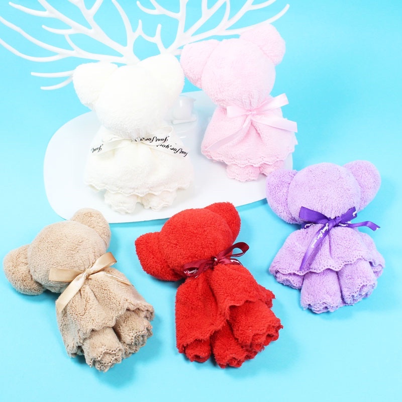kingmallshop (ร้านไทย)ผ้าเช็ดหน้าหมี มัดรูปตุ๊กตาหมี ของชำร่วย ของรับไหว้ ของฝาก ผ้าเช็ดหน้า ขนแกะ ผ้าเช็ดหน้า GG33