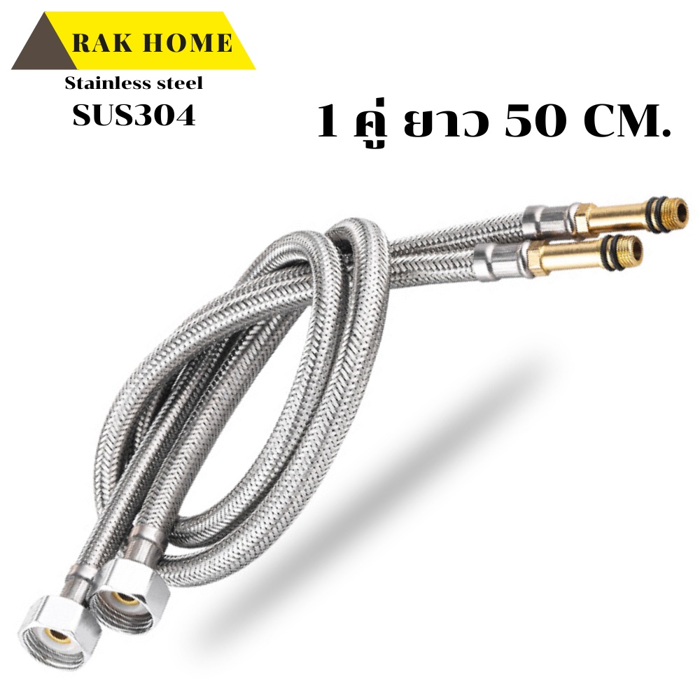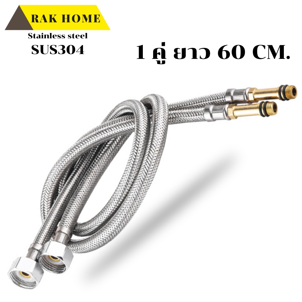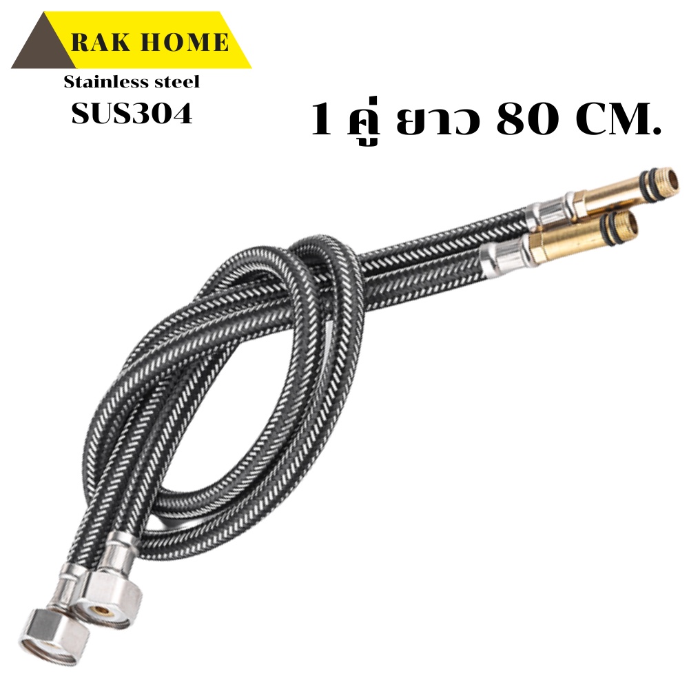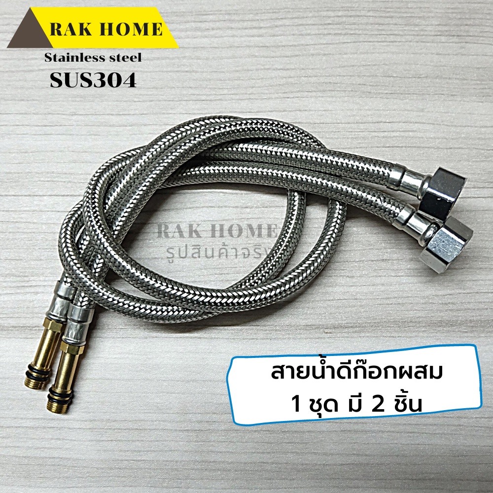 RAK HOME สายน้ำดี ก๊อกผสม น้ำร้อน-เย็น สแตนเลสถัก304 ไม่เป็นสนิม (1ชุด 2 ชิ้น)