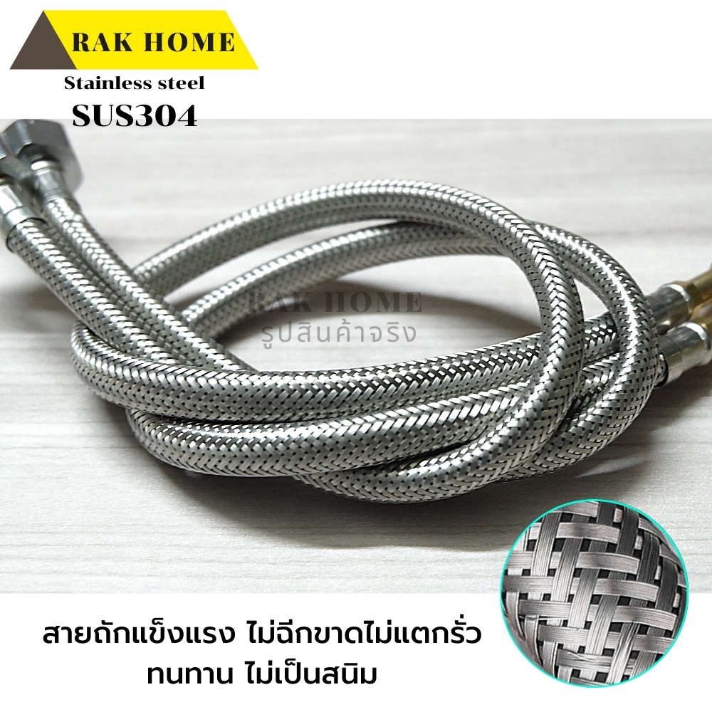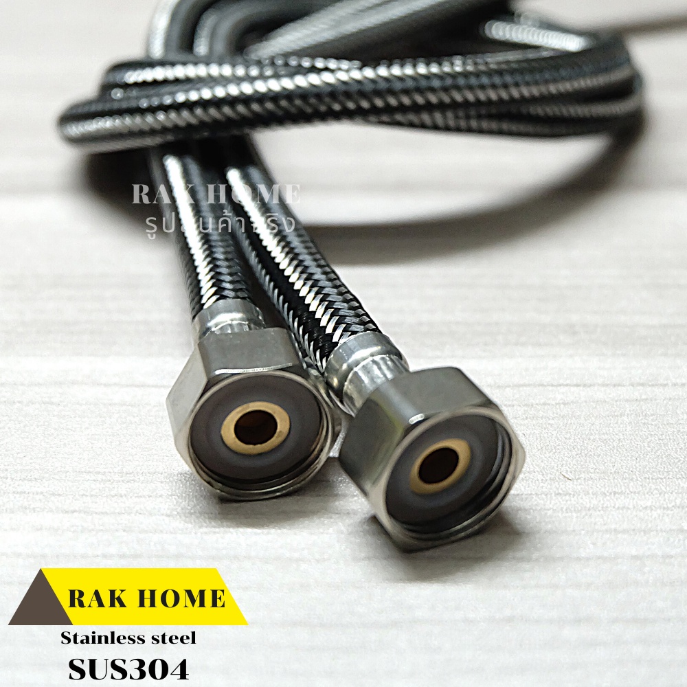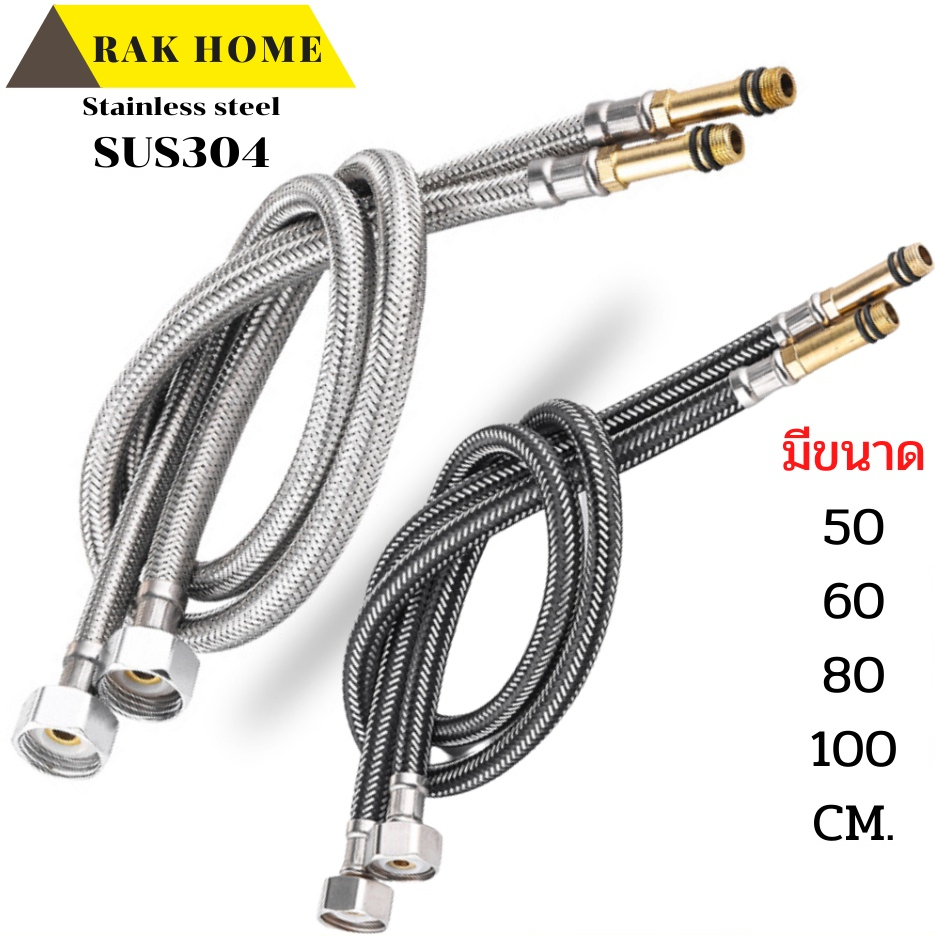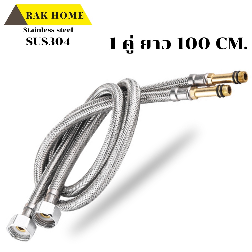 RAK HOME สายน้ำดี ก๊อกผสม น้ำร้อน-เย็น สแตนเลสถัก304 ไม่เป็นสนิม (1ชุด 2 ชิ้น)