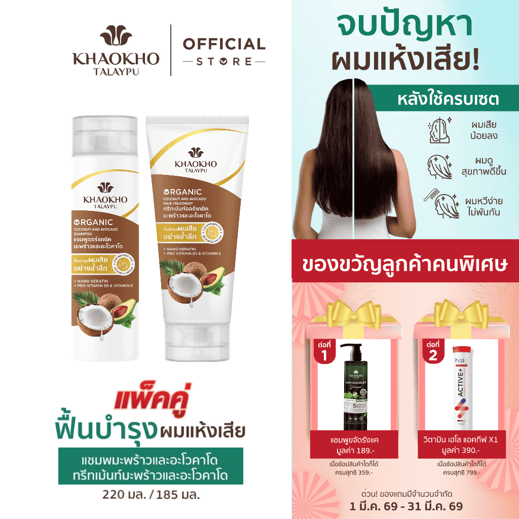 เขาค้อทะเลภู แชมพู + ทรีทเม้นท์ โคโคนัท แอนด์ อะโวคาโด ออร์แกนิค (220 + 185 มล.)