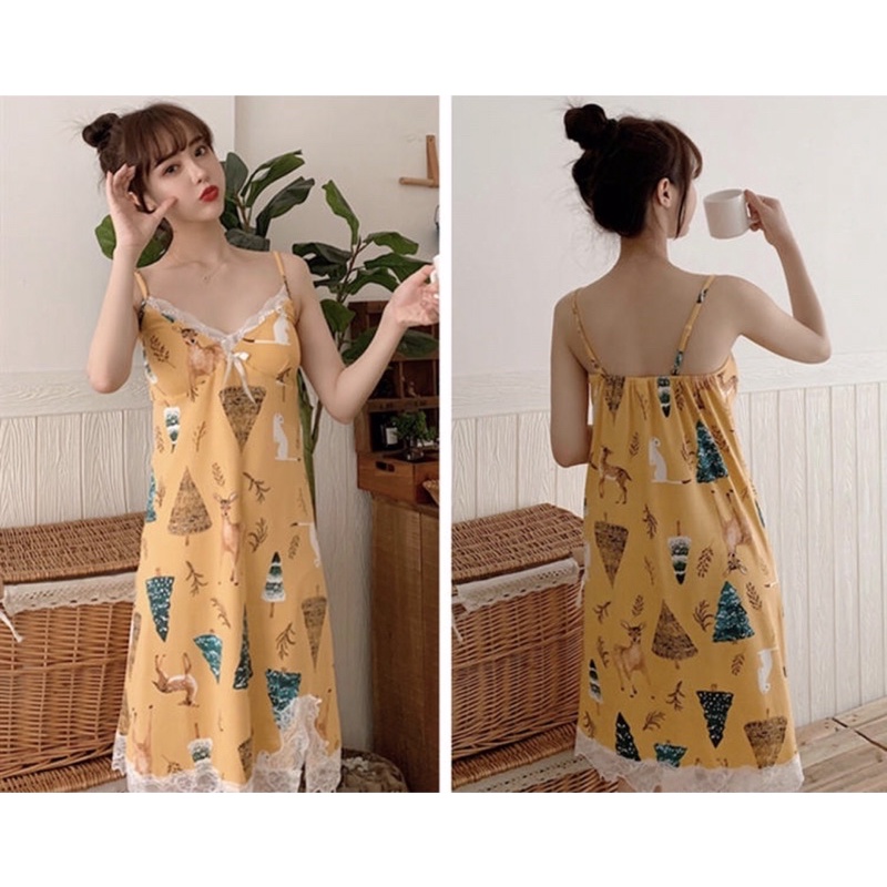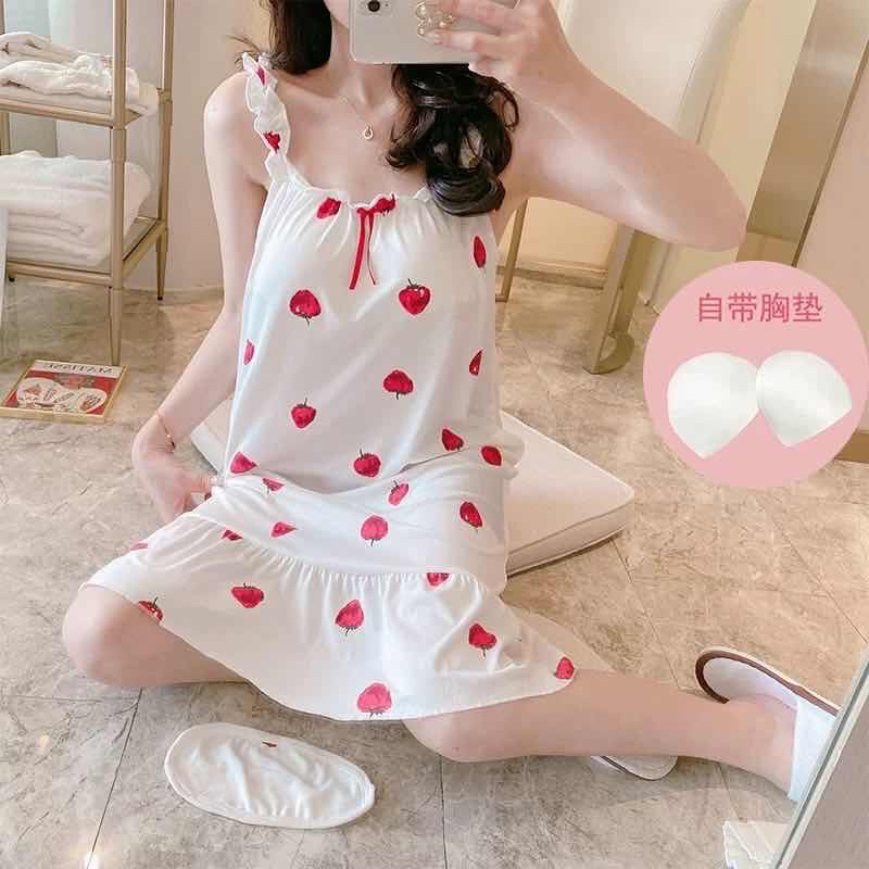 ชุดนอนเดรสมีฟองน้ำในตัว แถมผ้าปิดตัว