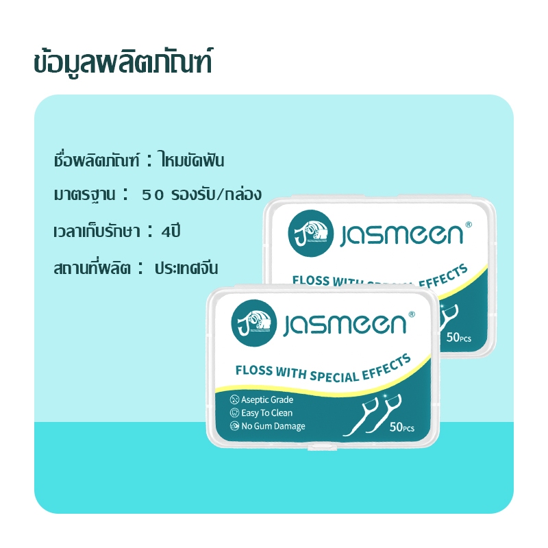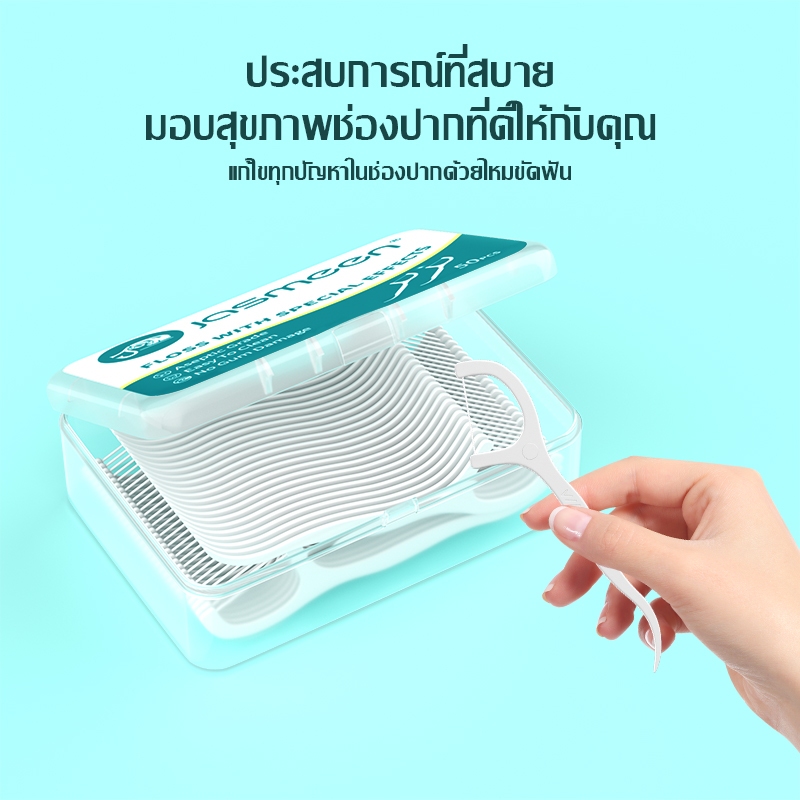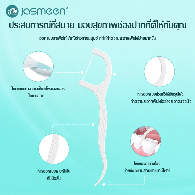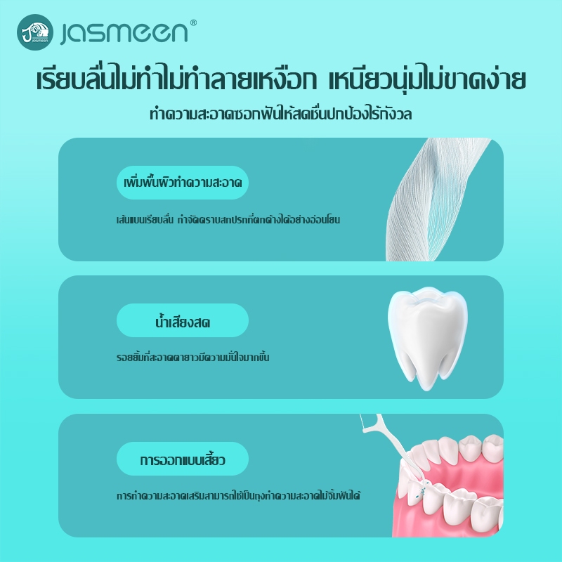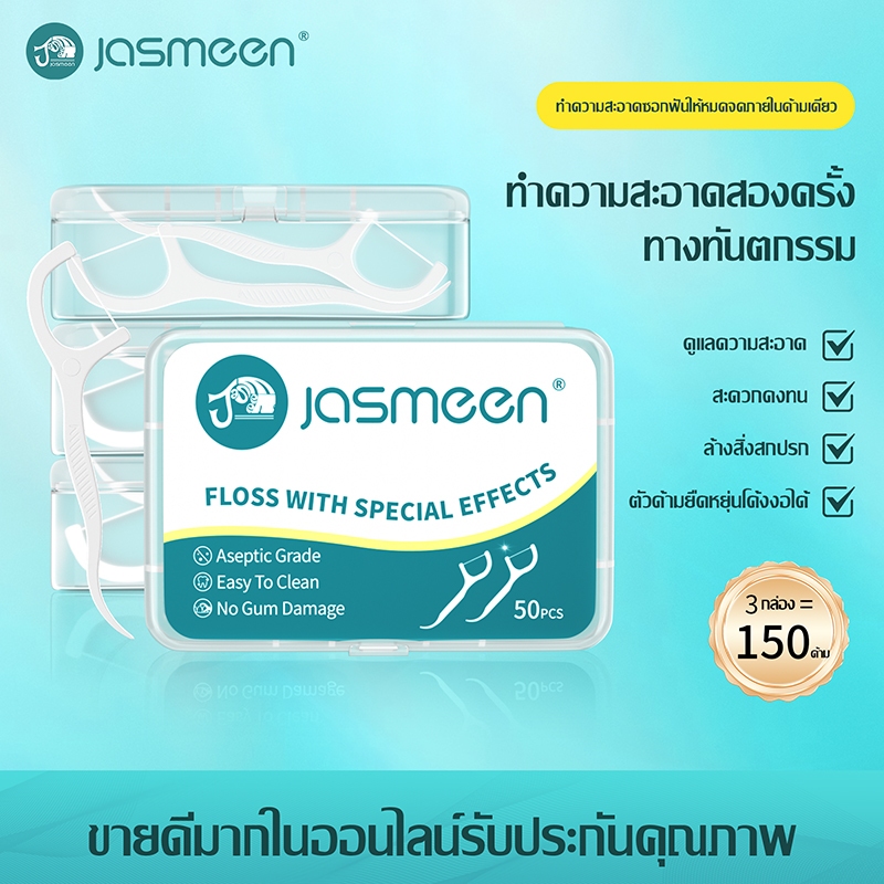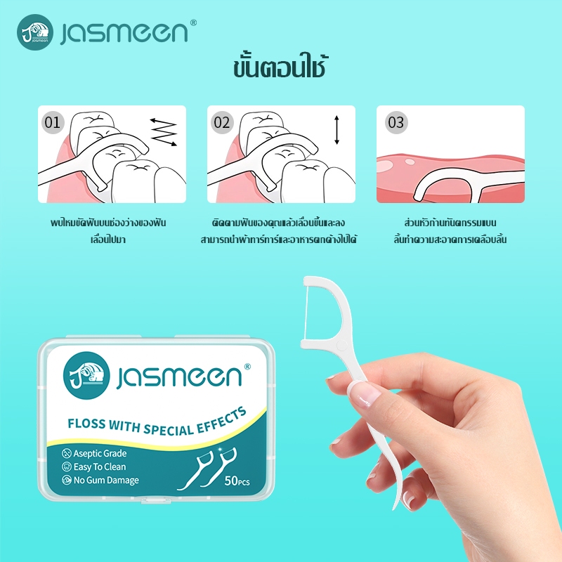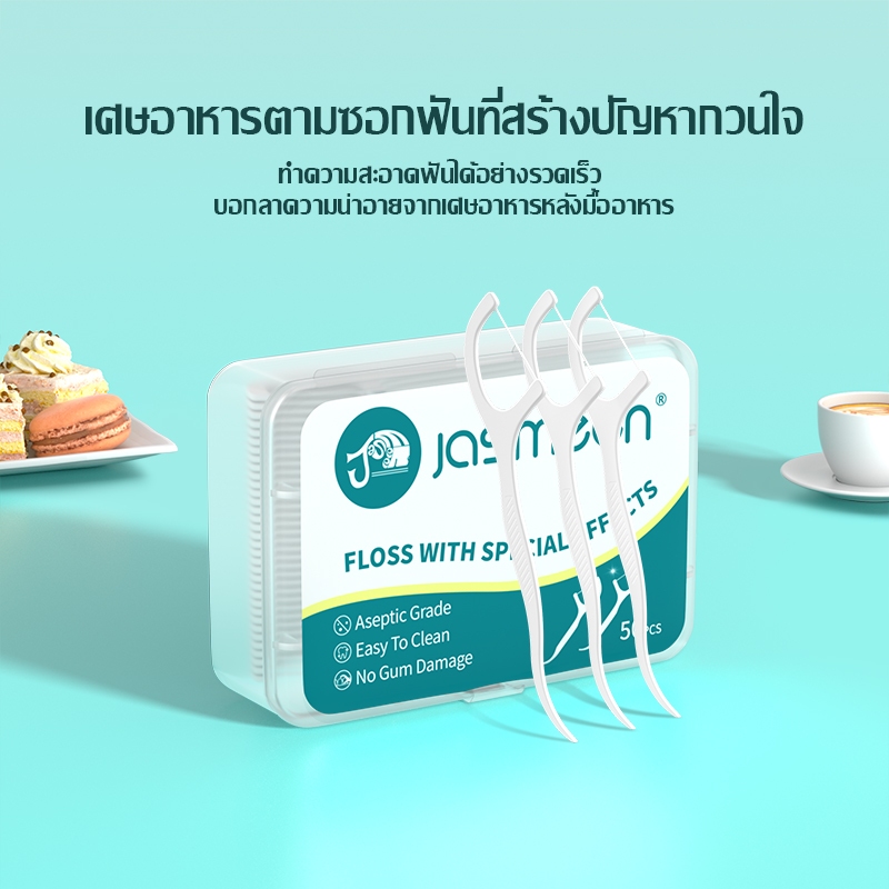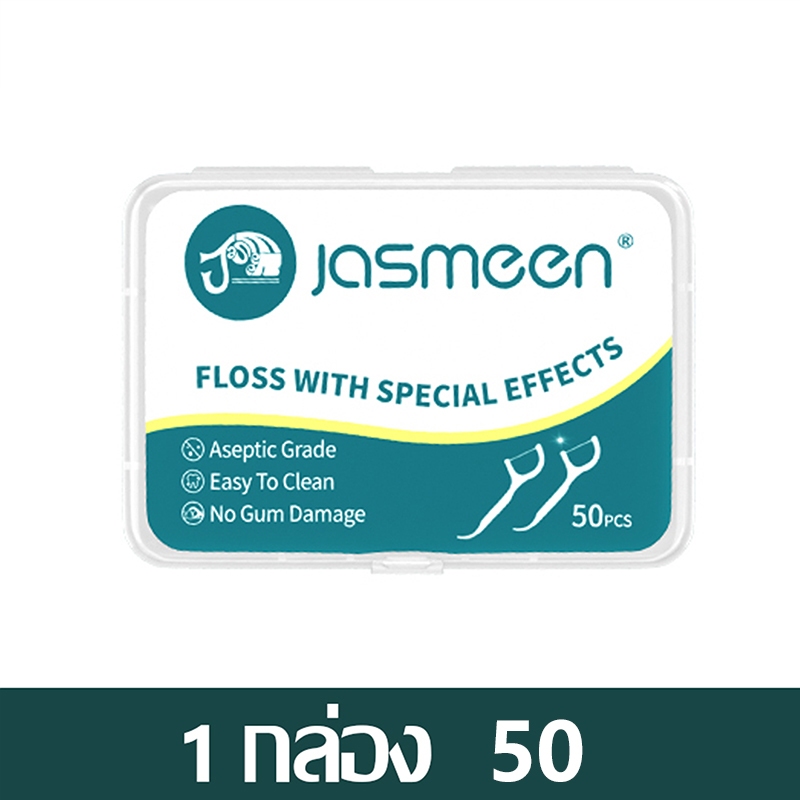 [50ชิ้น /กล่อง] Jasmeen 🦷ไหมขัดฟันแบบนุ่ม พิเศษ สำหรับพกพา ไหมขัดฟัน ไหมขัดฟันแบบพกพา สะอาดสดชื่นปกป้องฟัน