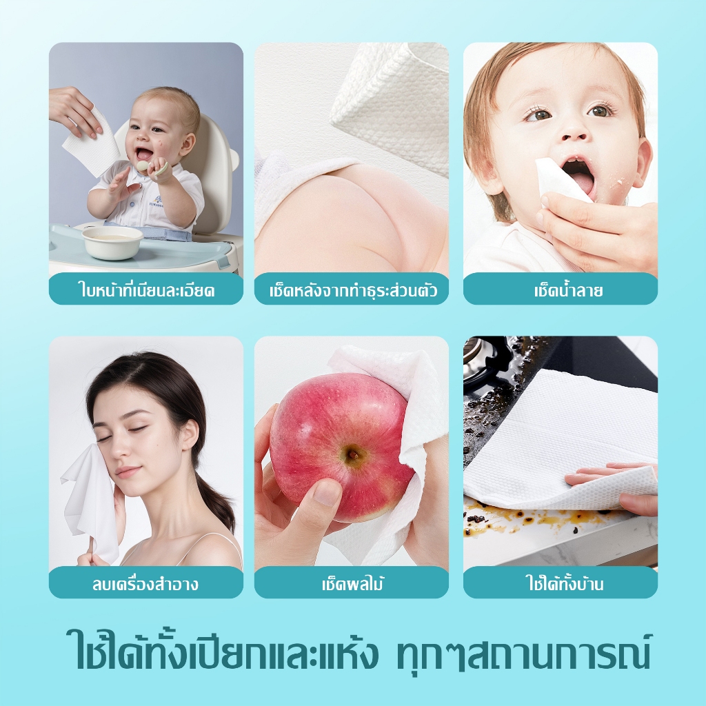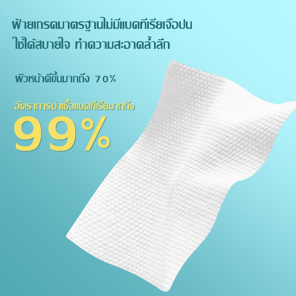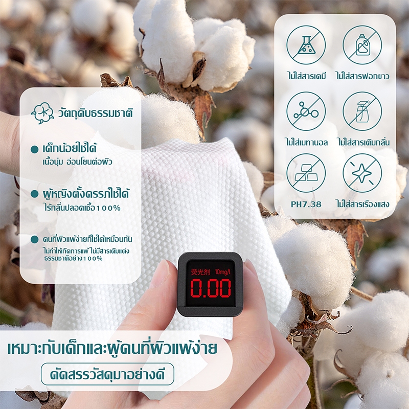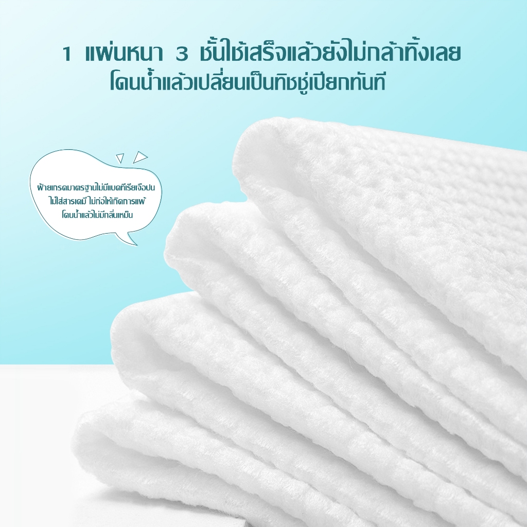 [50 pcs] Jasmeen ทิชชู่เช็ดหน้าผ้าฝ้าย 100% ผ้าขนหนูเช็ดหน้า ผ้าฝ้ายแท้แบบใช้แล้วทิ้งหนาลายมุกแต่งหน้า