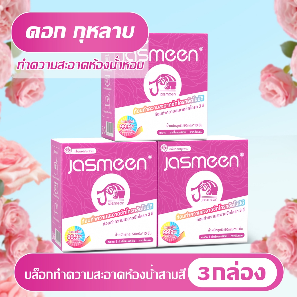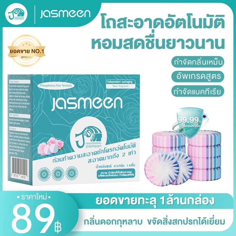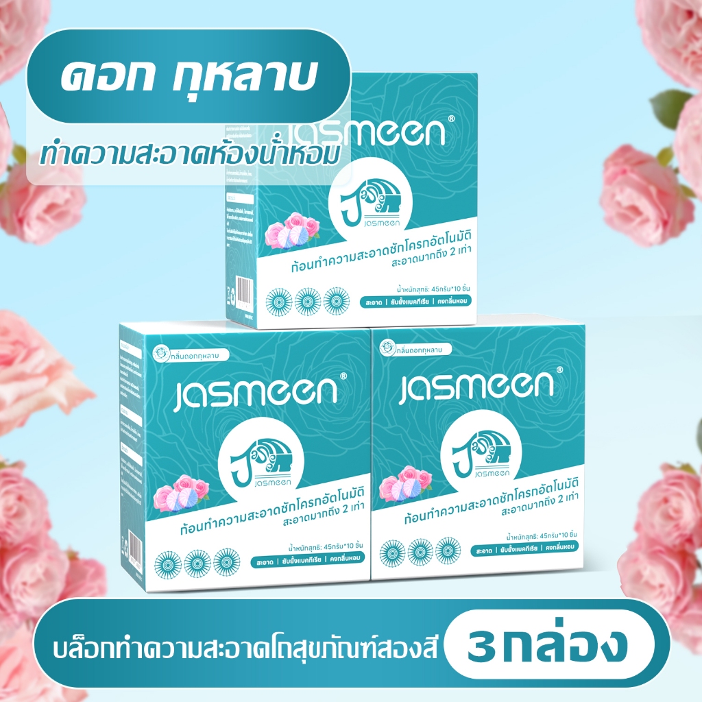 【 10 ชิ้น 】JASMEEN คัดสรรมาอย่างดี กลิ่นกุหลาบสองสี บล็อคสีชมพู ก้อนฟ้า ก้อนดับกลิ่นชักโครก 6 เอฟเฟ็กต์