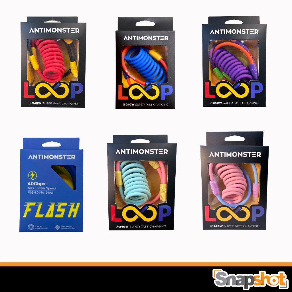 [พร้อมส่ง] ANTIMONSTER LOOP รองรับชาร์จเร็ว 240W Type C สายชาร์จแบบสปริง Fast Charging ของแท้ ออกใบกำกับภาษีได้