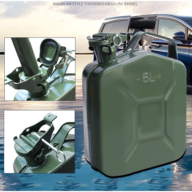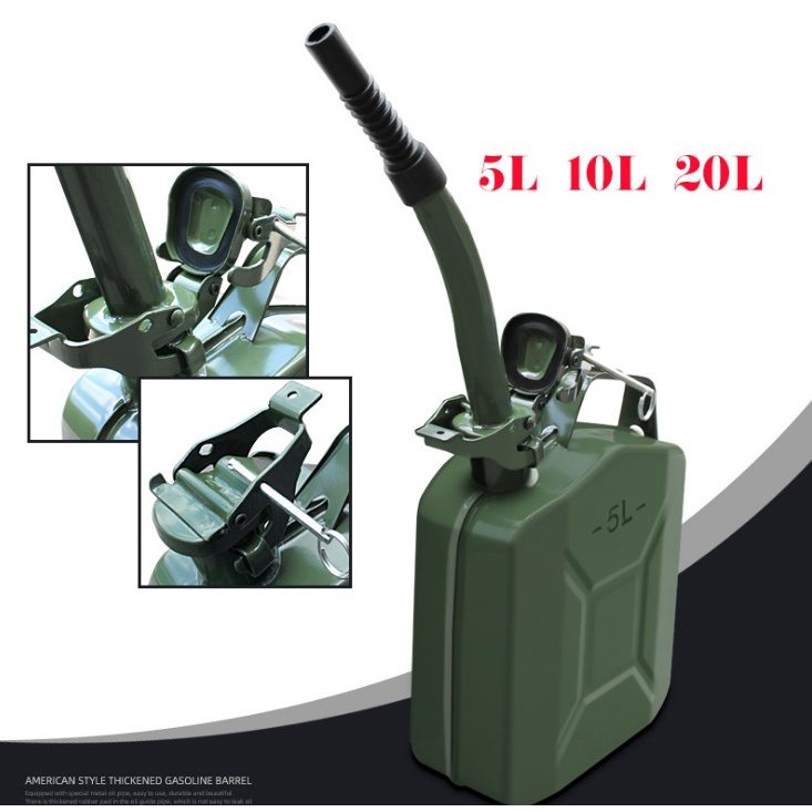 ถังบรรจุน้ำมัน ถังใส่น้ำมัน ได้มาตรฐาน แข็งแรง แบบถังเหล็ก สีเขียว พร้อมท่อเติมน้ำมันเหล็ก