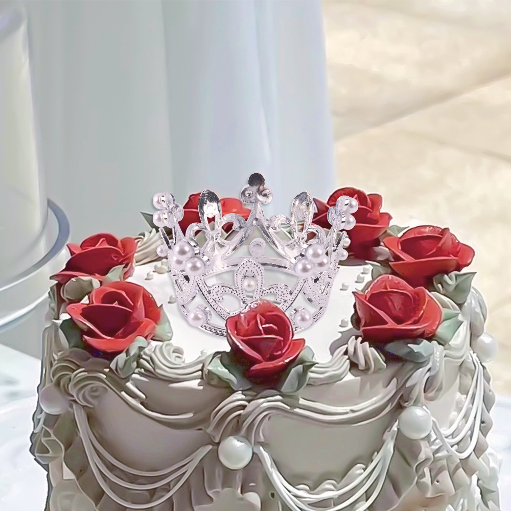 มงกุฎเจ้าหญิง ประดับไข่มุกคริสตัล ขนาดเล็ก สําหรับตกแต่งเค้กวันเกิด งานแต่งงาน