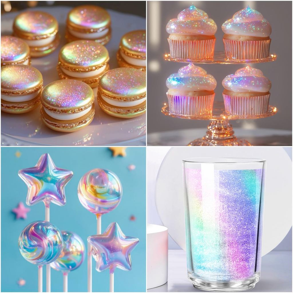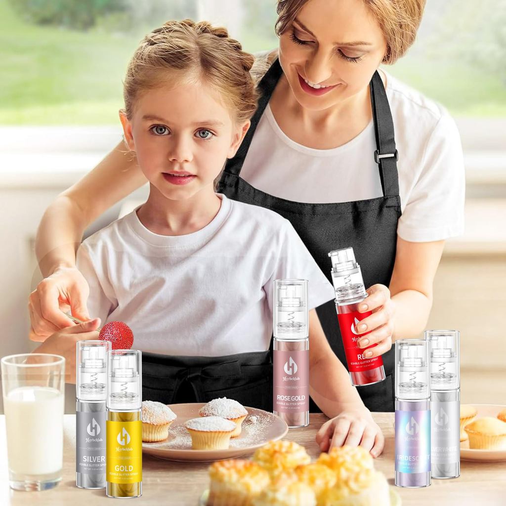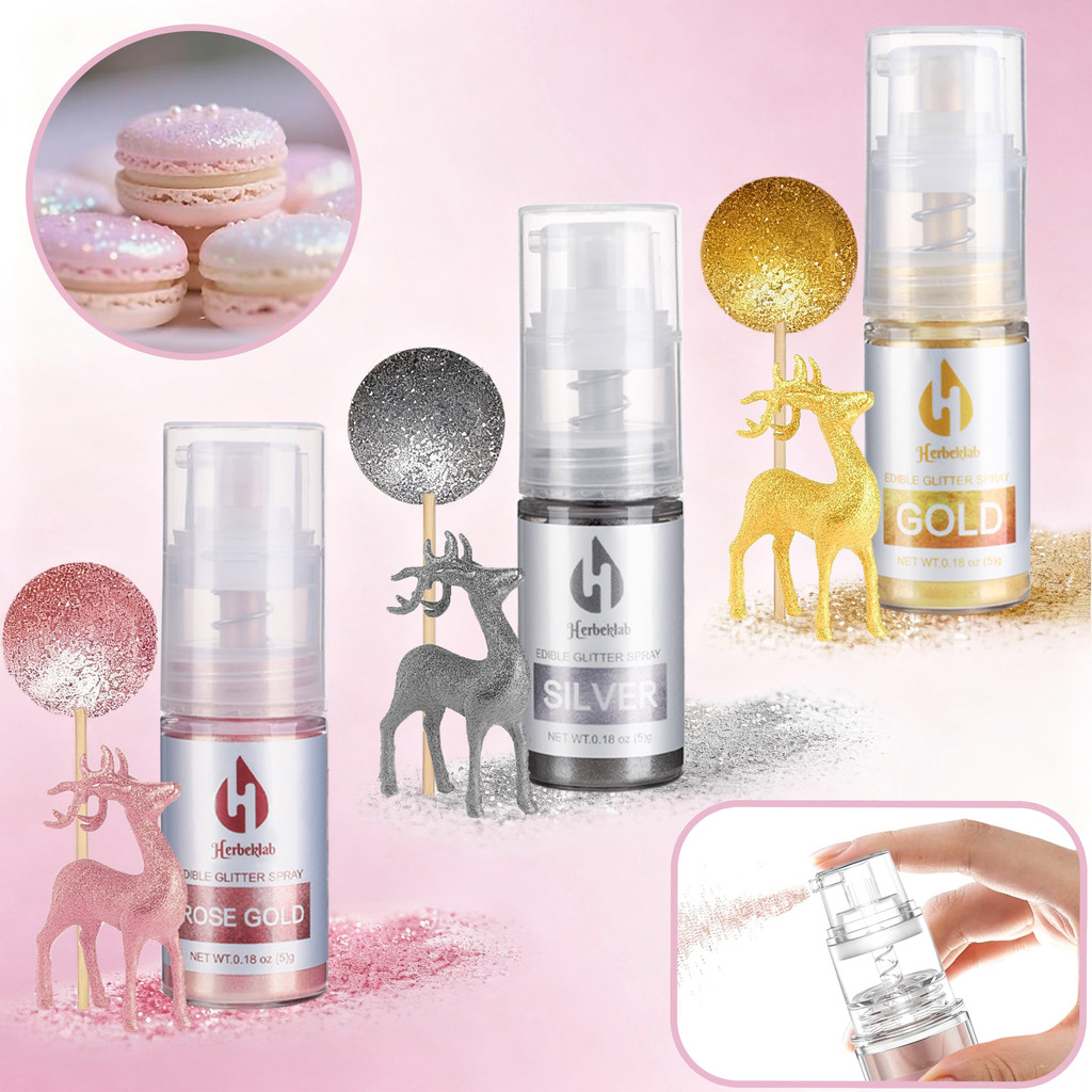 สเปรย์เมทัลลิกทานได้ 8 สี เกรดอาหาร ผงโรยเค้กแต่งหน้าแบบวาว - เอฟเฟกต์ส่องแววสำหรับคัพเค้ก คุกกี้ ช็อคโกแลตสตรอว์เบอร์รี่ 5 กรัม/ขวด