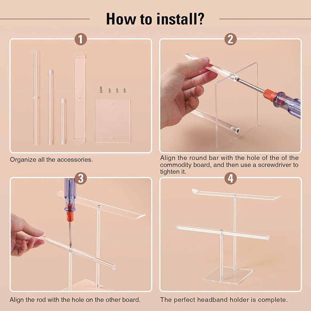 [Whgirld8] Hair Hoop Organizer Headpiece Rack 2 ป้องกันอะคริลิคแถบคาดศีรษะแข็งแรง
