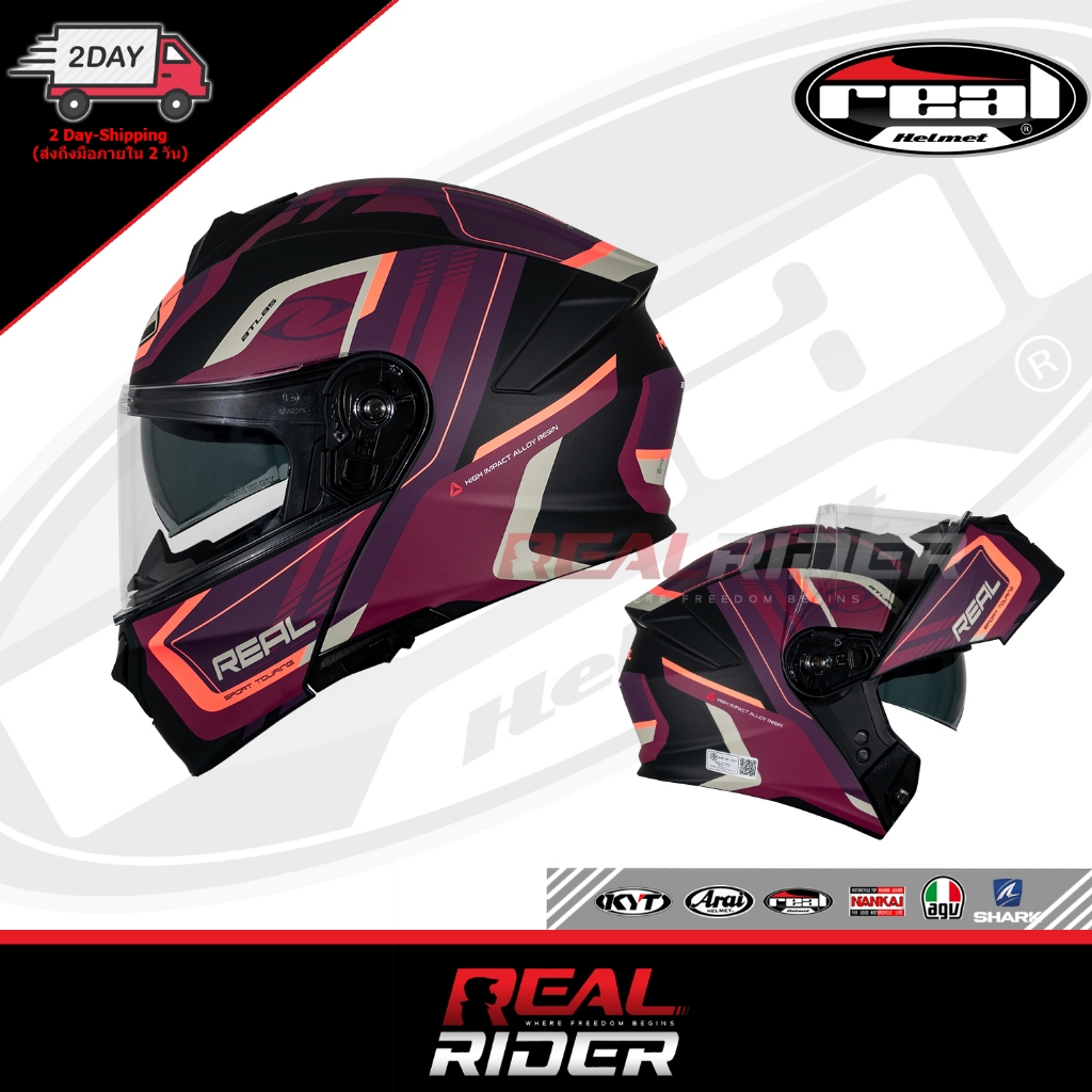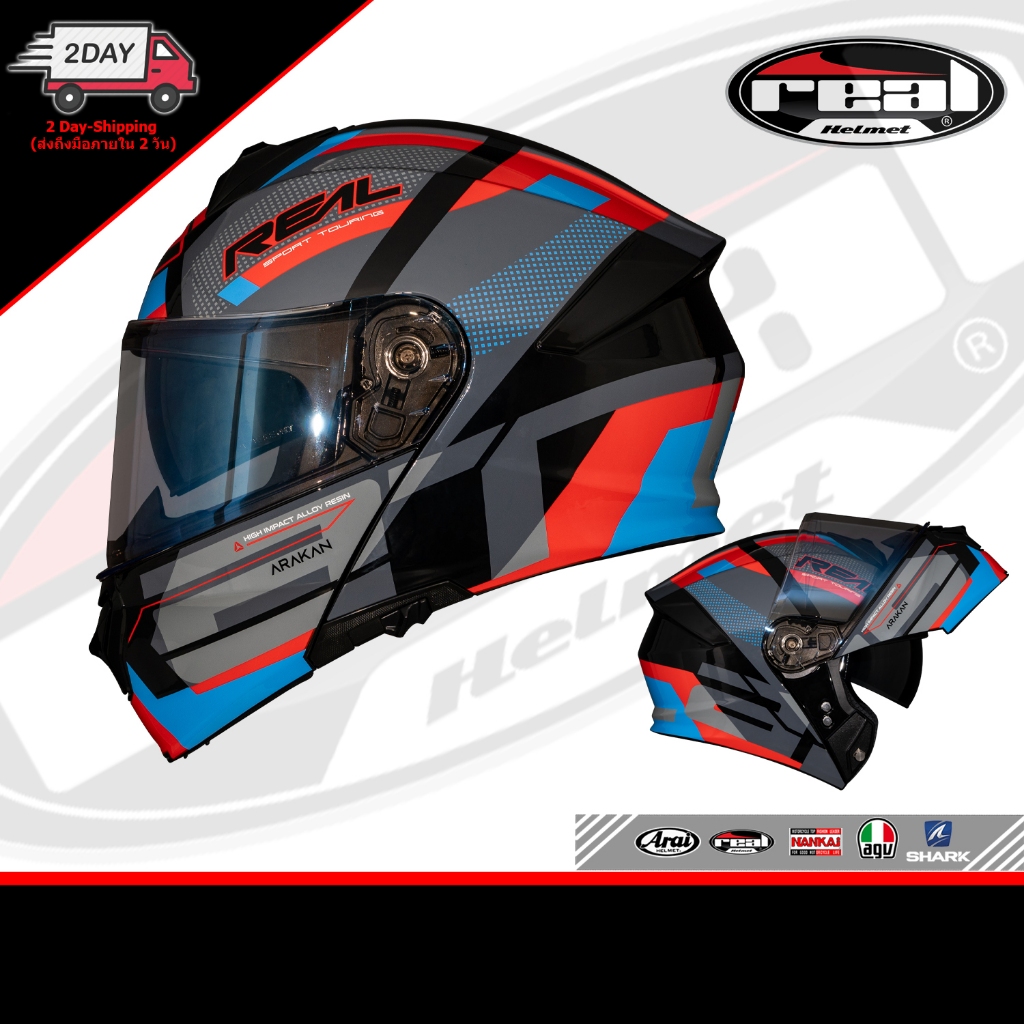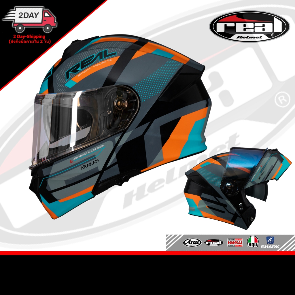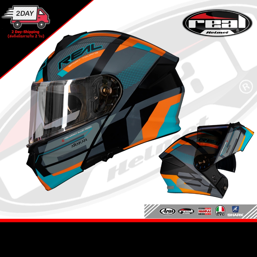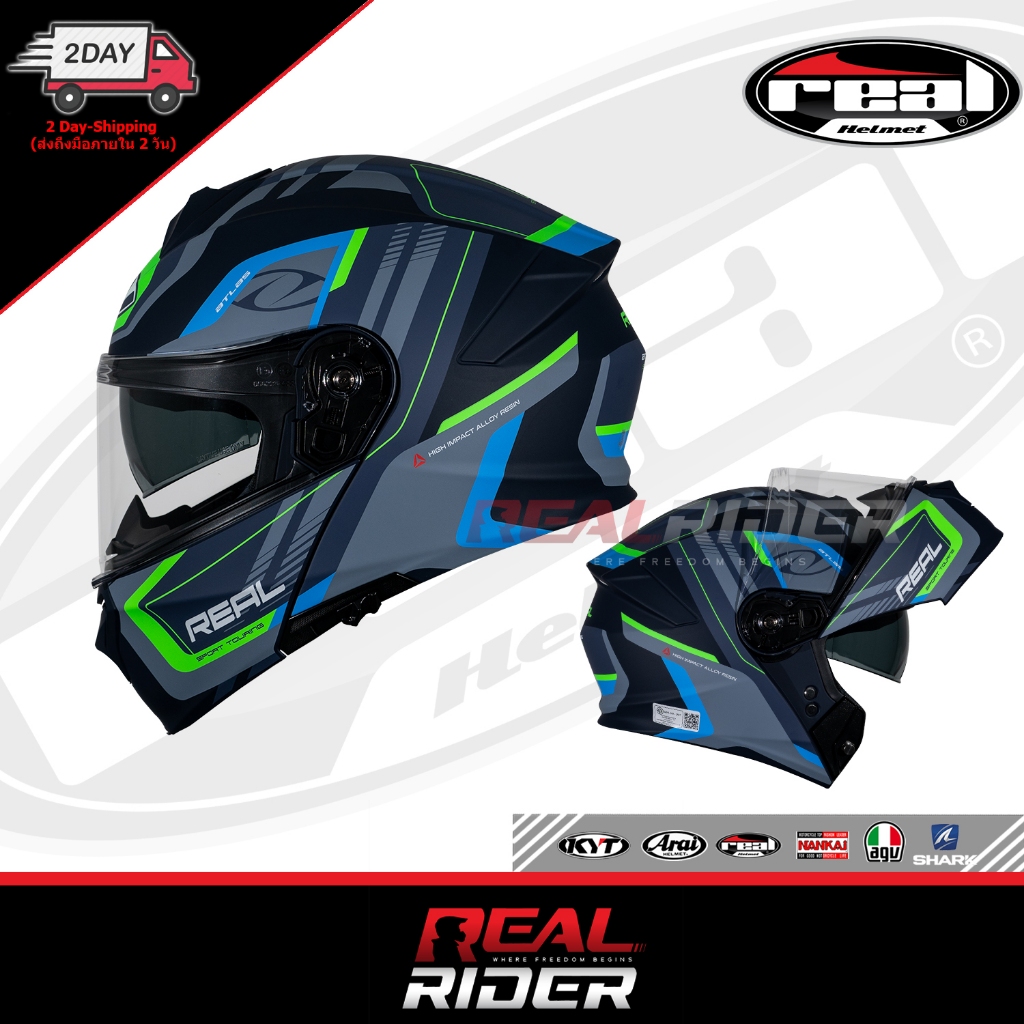 Official Thailand หมวกกันน็อค REAL รุ่น Atlas (Flip-Up) - เรียล แอทลาส (ยกคาง / กระจก2ชั้น ชิลด์ใส) หมวกศูนย์แท้
