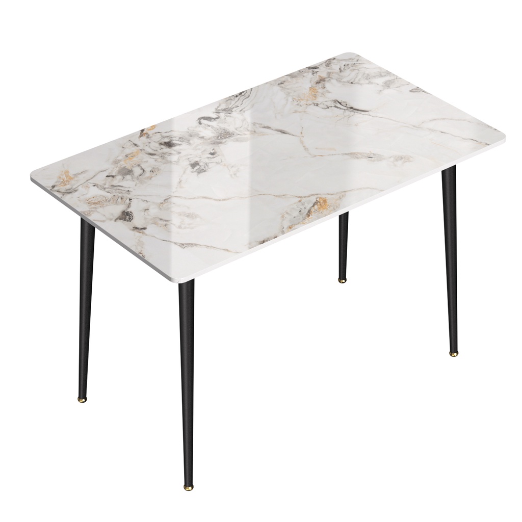 โต๊ะรับประทานอาหารห้องครัวโมเดิร์น Sintered Slate Stone Top กรอบโลหะห้องนั่งเล่นสี่เหลี่ยมผืนผ้า
