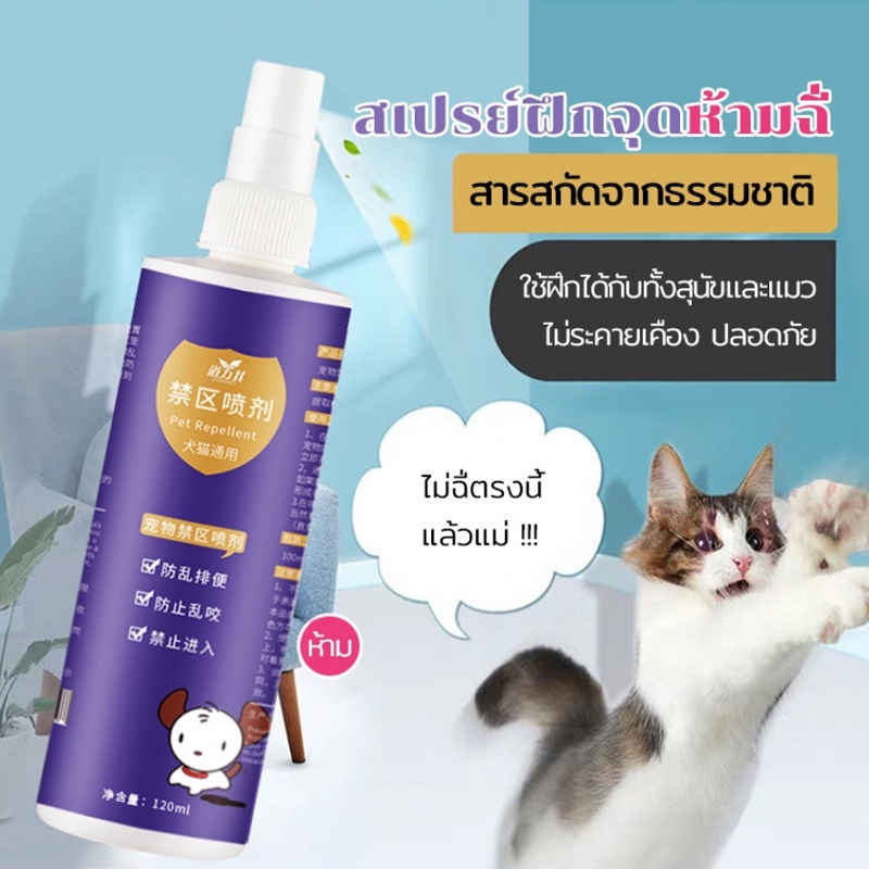 🐱พร้อมส่ง🐶120 ml สเปรย์ฝึกการขับถ่าย ให้ฉี่ ห้ามฉี่ สำหรับสัตว์เลี้ยง ฉีดตรงไหนได้ผลตรงนั้น ปลอดภัยไร้สารตกค้าง แมว