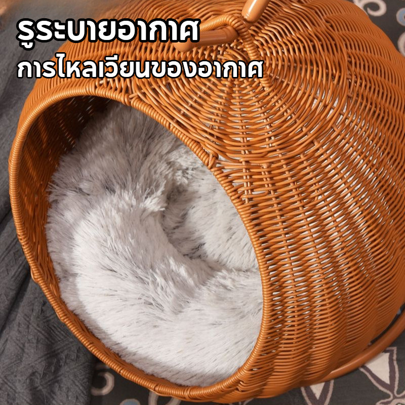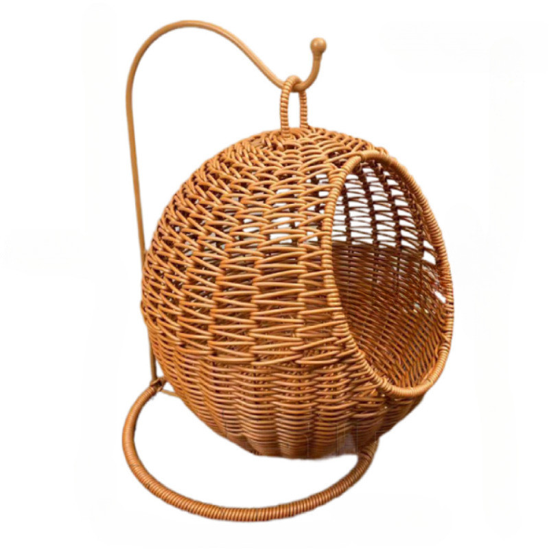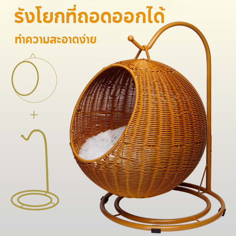 กรงแมวทอหวายเทียม ตะกร้าแขวนทรงกลม ที่นอนแมวสาน ตะกร้าแขวนฤดูร้อน เตียงแมวขนาดใหญ่ ระบายอากาศดี ทนทานต่อรอยขีดข่วน