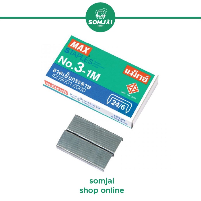 MAX - แม็กซ์ ลวดเย็บกระดาษ ลวดเย็บตัวยู รุ่น No.3-1M (24/6) บรรจุ 1000 ลวด/กล่อง