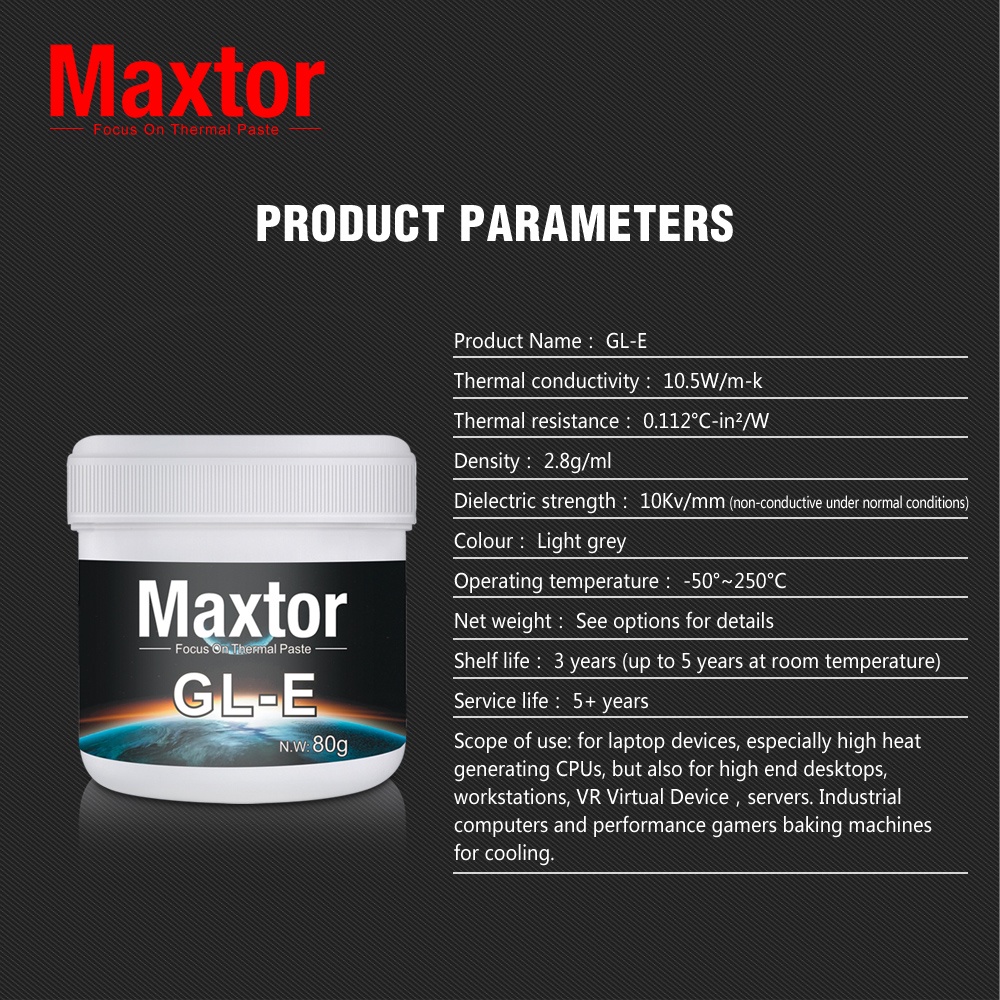 [maxtor official] Maxtor GL-E ซิลิโคน CPU 50g/80g Thermal Paste 10.5W/mk High Performance Cooler Silicone