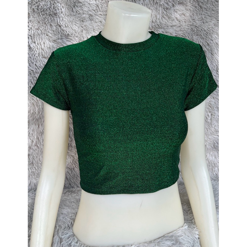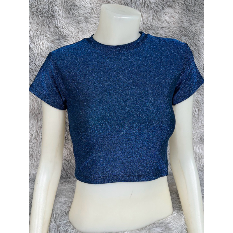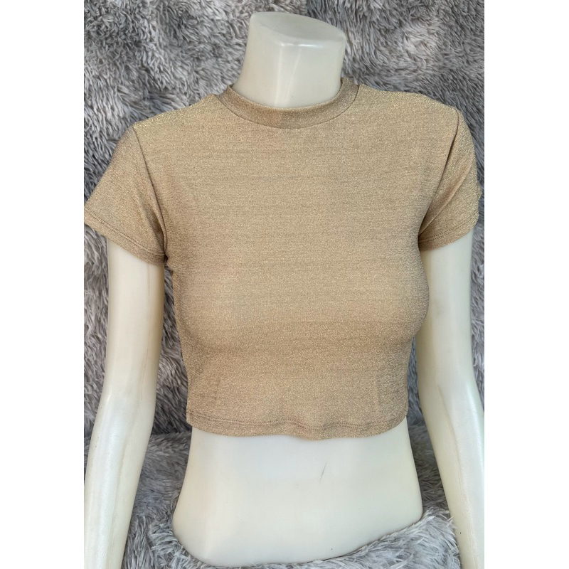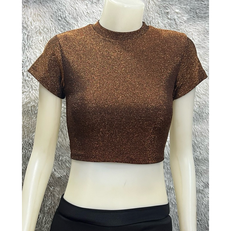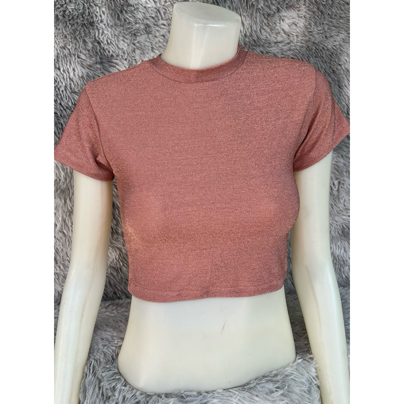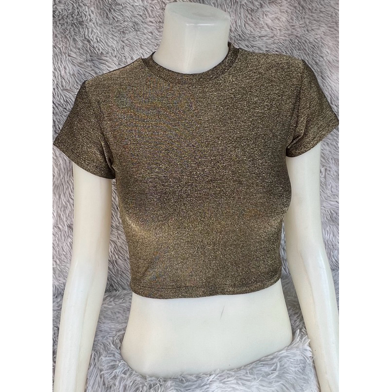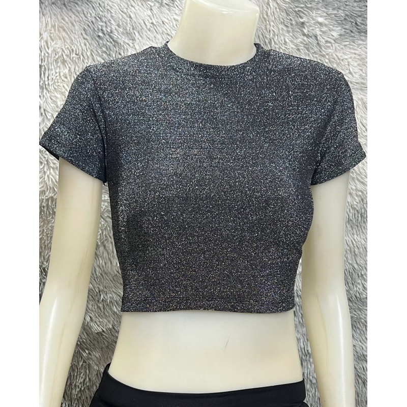 sns92🧝🏻♀️เสื้อครอปเอวลอย🧝🏻♀️คอกลม🧝🏻♀️ผ้าวิ้งๆ Shine🧝🏻♀️