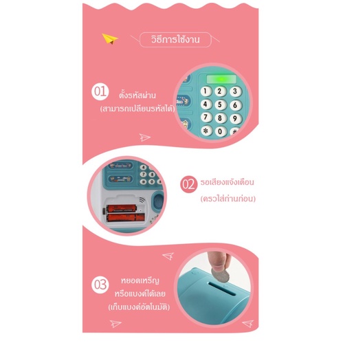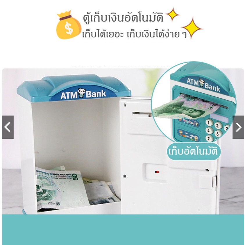 กระปุกออมสิน ATM หยอดเหรียญได้ เครื่องฝากอัตโนมัติ ปลอดภัย ตู้เอทีเอ็มเด็ก เปลี่ยนรหัสได้