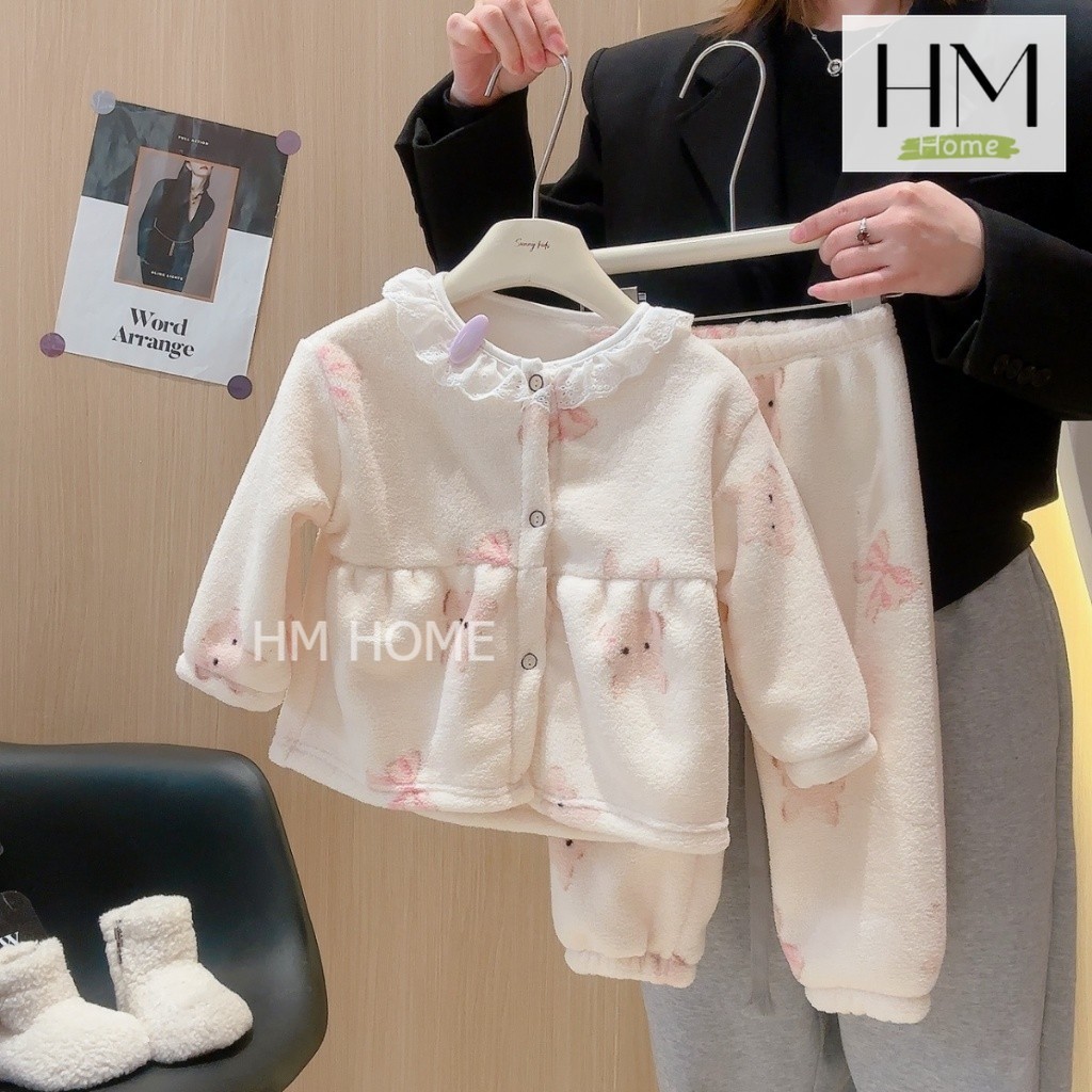 ชุดนอนกันหนาวเด็ก ชุดเซ็ทเสื้อแขนยาวกางเกงขายาว ชุดนอนเด็กผู้หญิง