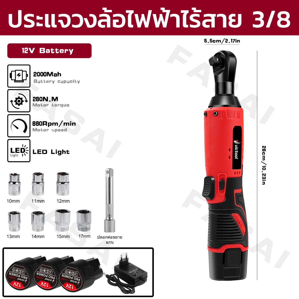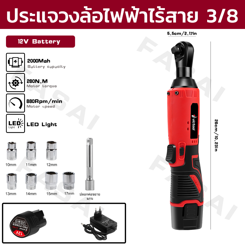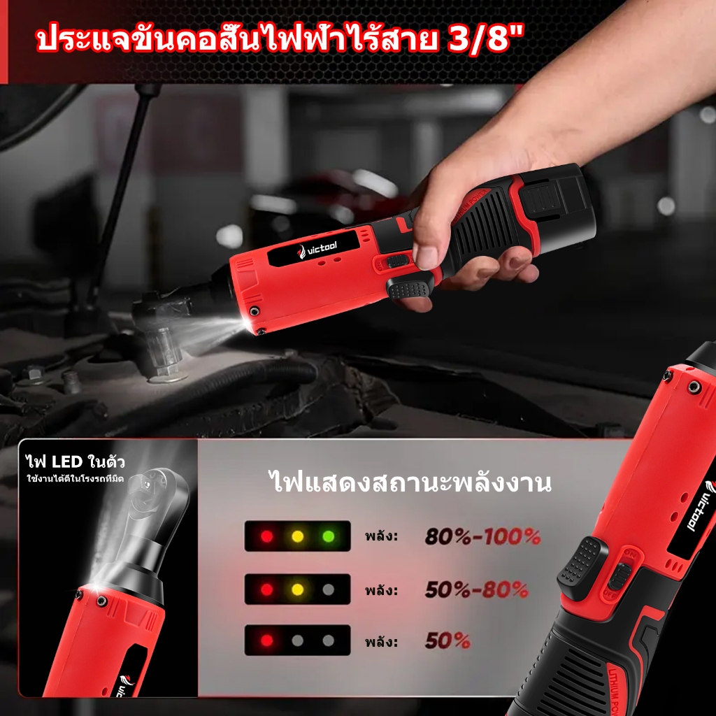 ประแจวงล้อไฟฟ้า 3/8 ประแจไขควงไฟฟ้าไร้สาย 320N.M ประแจไฟฟ้า มุมขวา ชุด 12 ชิ้น พร้อม ไฟ LED คุณภาพสูง รับประกัน 3ปี