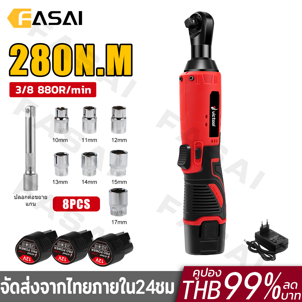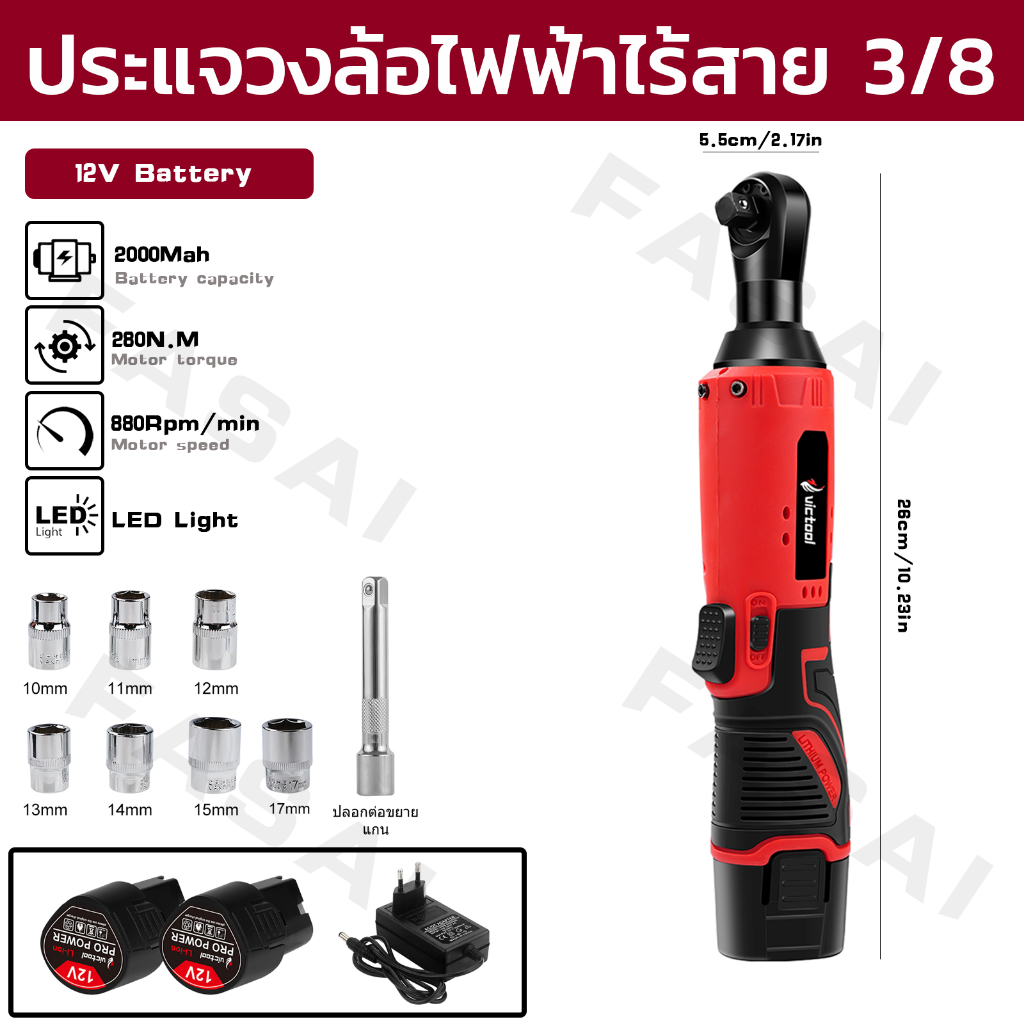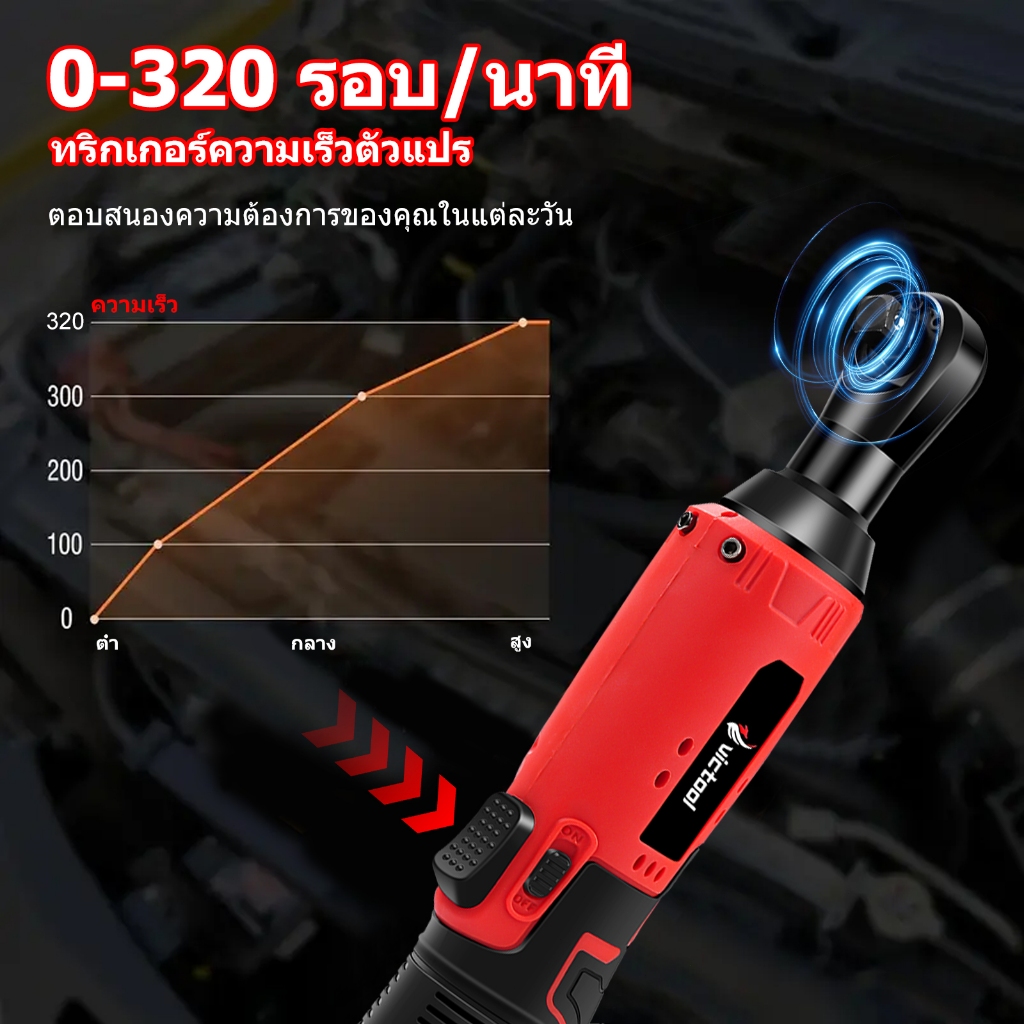 ประแจวงล้อไฟฟ้า 3/8 ประแจไขควงไฟฟ้าไร้สาย 320N.M ประแจไฟฟ้า มุมขวา ชุด 12 ชิ้น พร้อม ไฟ LED คุณภาพสูง รับประกัน 3ปี