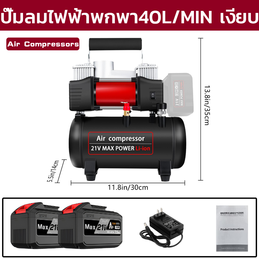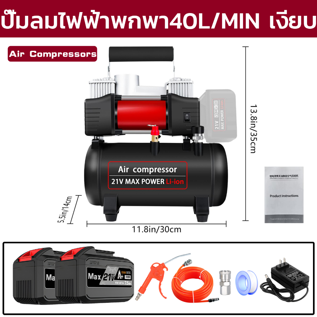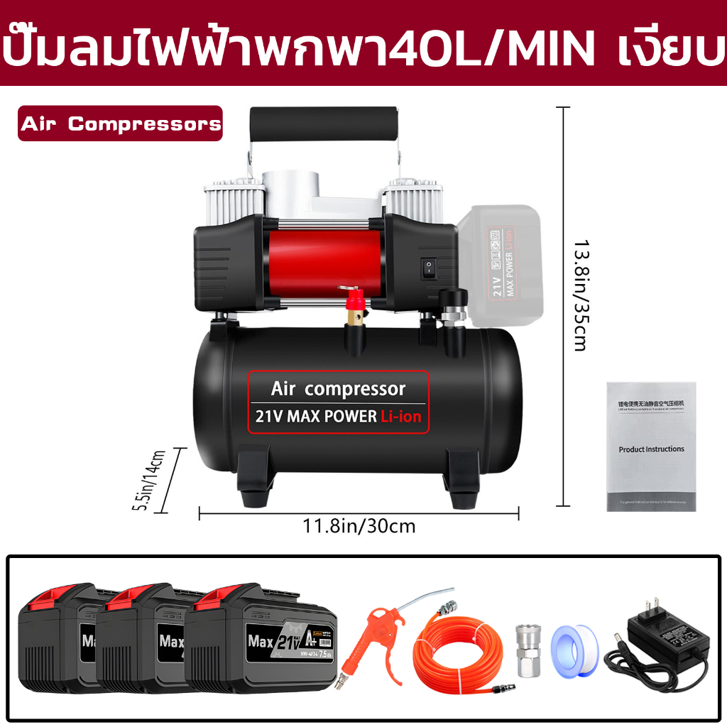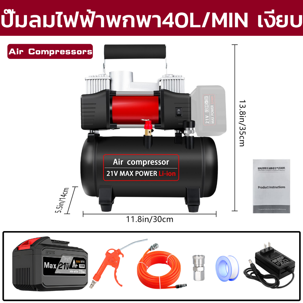(ถูกสุด) ปั้มลม ปั๊มลมไฟฟ้า 45L/min ปั๊มลมออยฟรีเงียบ+ปลั๊กพ่วงอย่างดี 7 เมตร+ปืนลม แบตเตอรี่ขนาดใหญ่ 3 ก้อน (15 เซลล์)