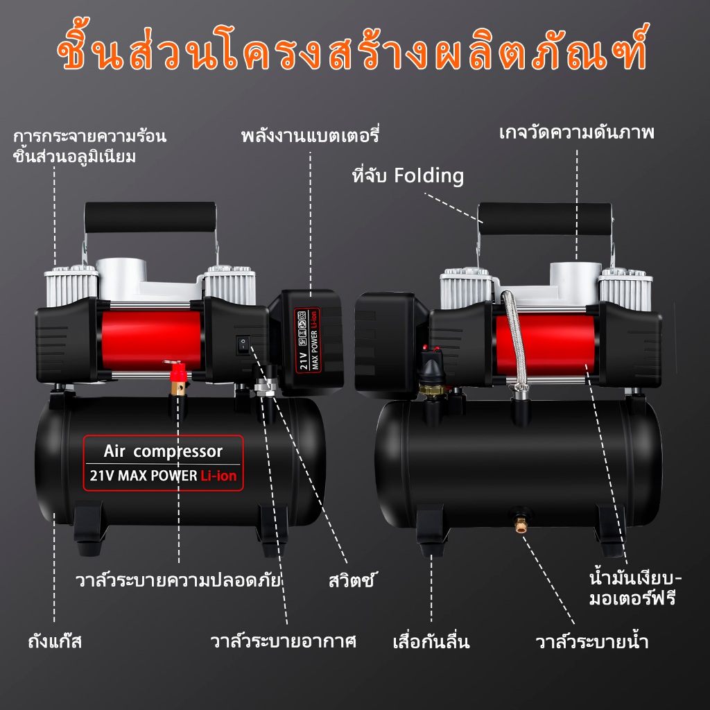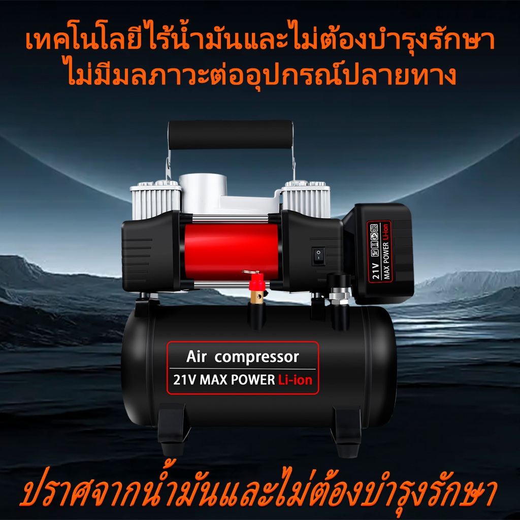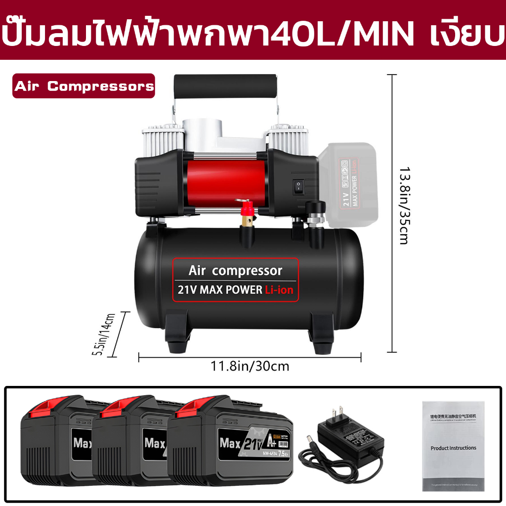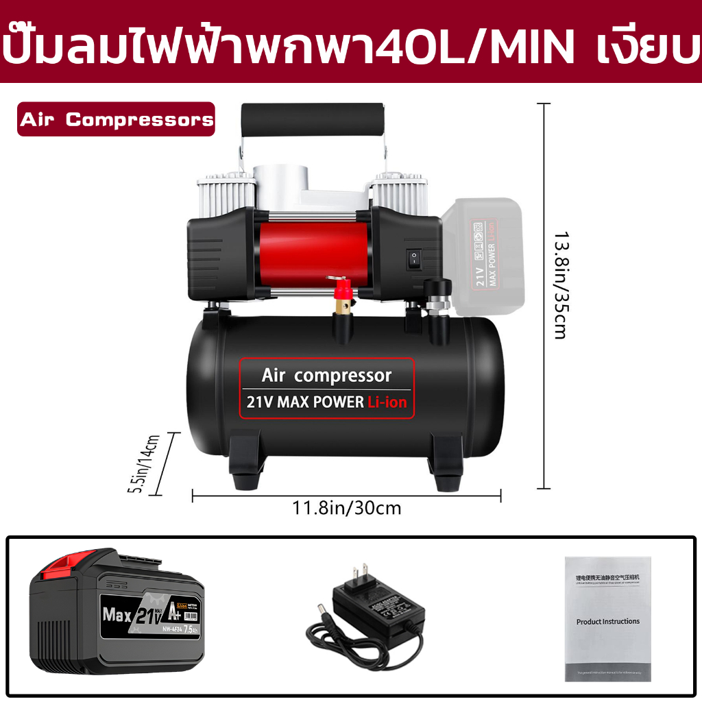 (ถูกสุด) ปั้มลม ปั๊มลมไฟฟ้า 45L/min ปั๊มลมออยฟรีเงียบ+ปลั๊กพ่วงอย่างดี 7 เมตร+ปืนลม แบตเตอรี่ขนาดใหญ่ 3 ก้อน (15 เซลล์)