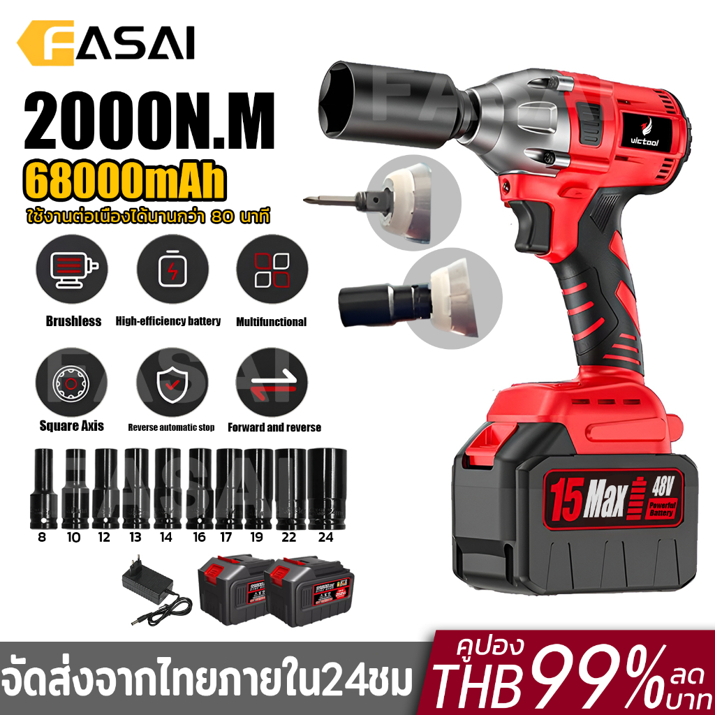 บล็อกไฟฟ้าไร้สาย บล็อกไฟฟ้า 2000N.M ประแจไฟฟ้า Brushless ฟังก์ชั่น2in1 3 แบตเตอรี่ลิเธียม แรงบิดสูง จัดส่งจากประเทศไทย