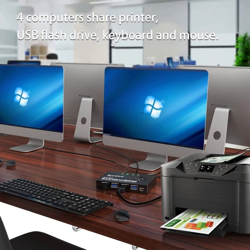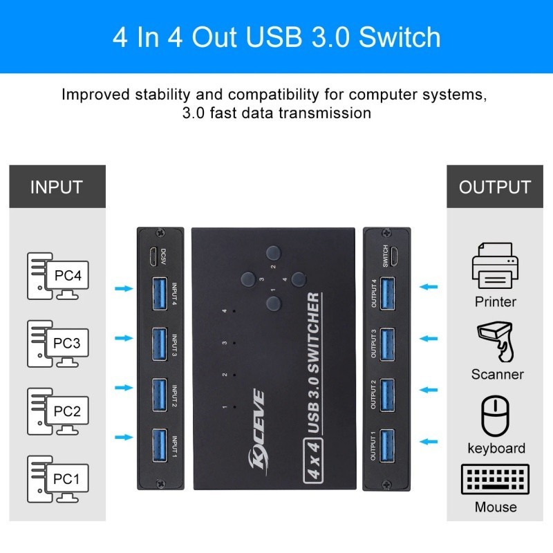 Kceve สวิตช์เลือก USB 3.0 4 พอร์ต สวิตช์ KVM แชร์คอมพิวเตอร์ 4 เครื่อง อุปกรณ์ USB 4 ชิ้น สวิตช์ USB สําหรับคีย์บอร์ด เมาส์