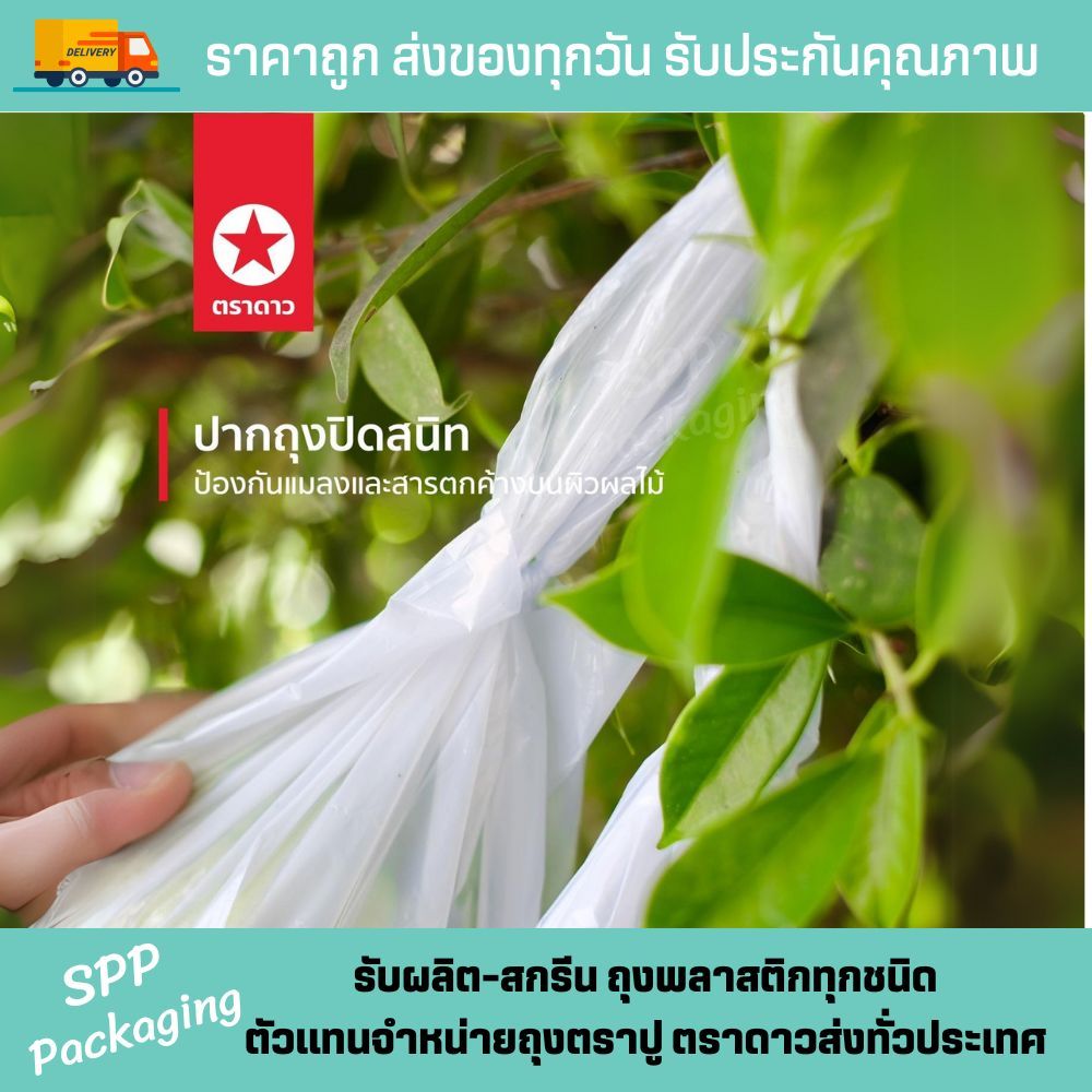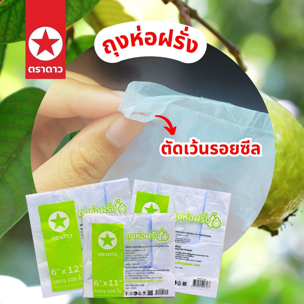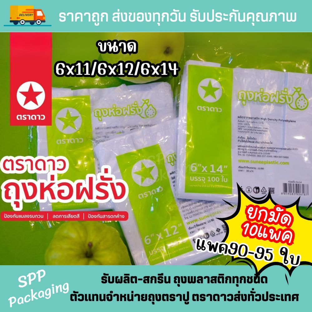 (ยกมัด10แพค) ถุงห่อฝรั่ง (เจาะรูแล้ว) ตราดาว ห่อผลไม้ กันแมลง ถุงเหนียว สีขาวขุ่น แพค90-95ใบ ขนาด6x11/6x12/6x14