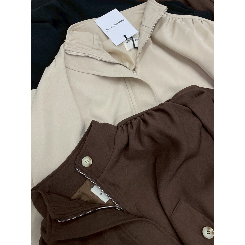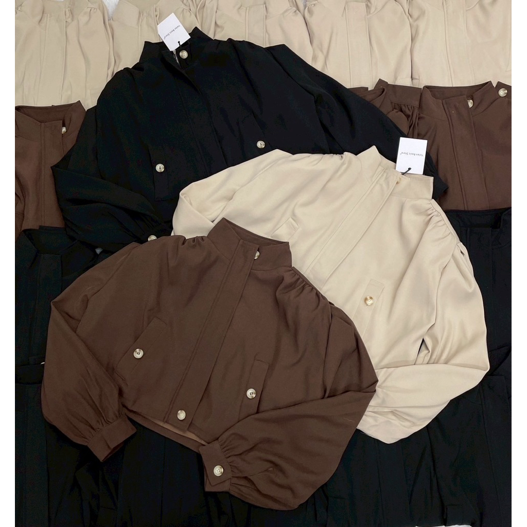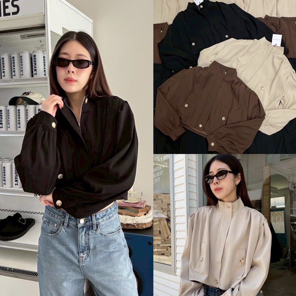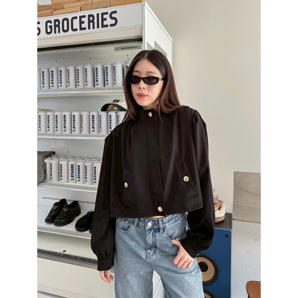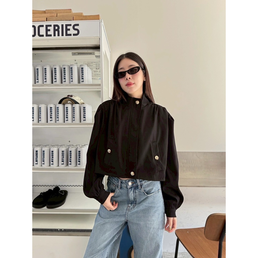 Basic jacket🤍🖤 เสื้อคลุมแจคเกตทรงครอป คอสูง ผ้าดีมากกกก ดีเทลแต่งซิปสีเงินใช้งานได้จริง