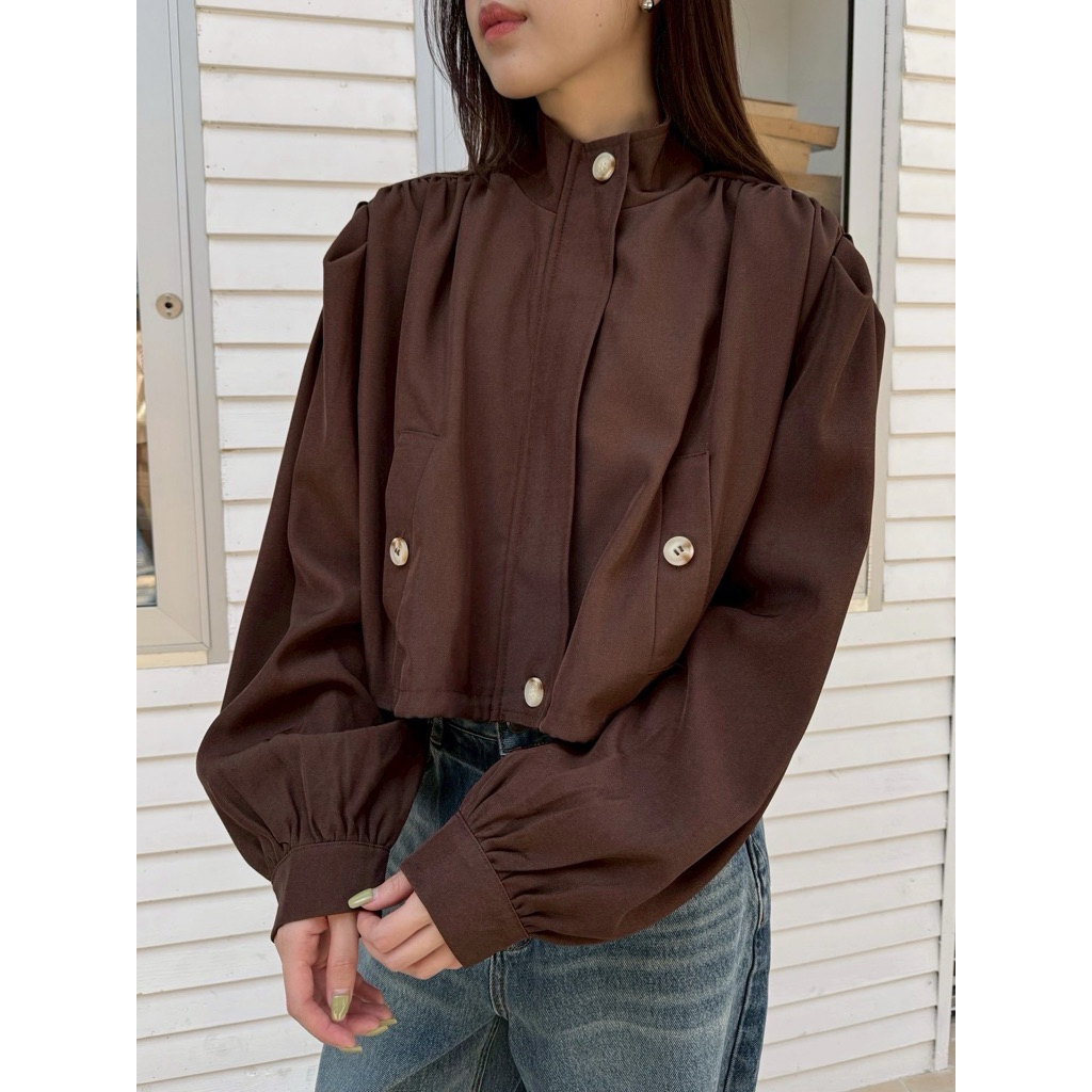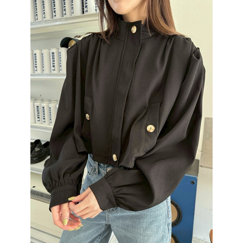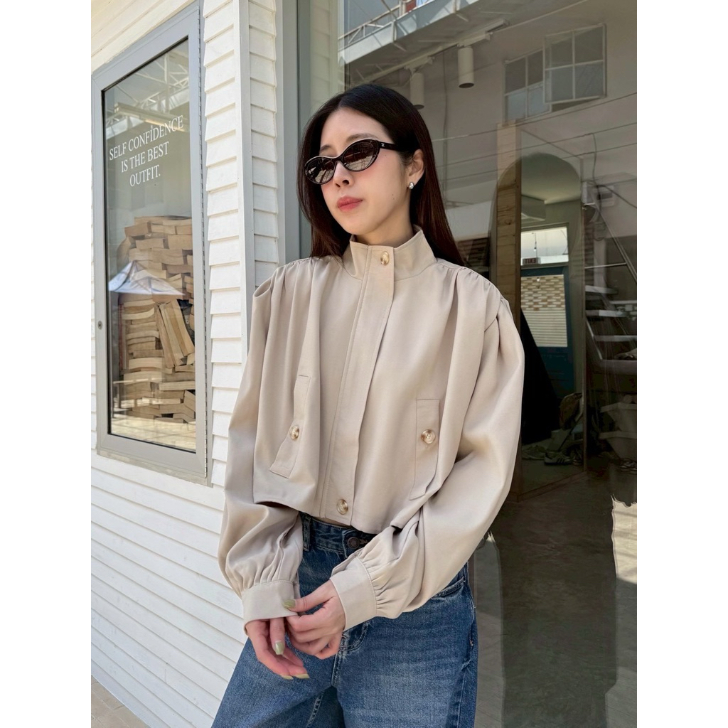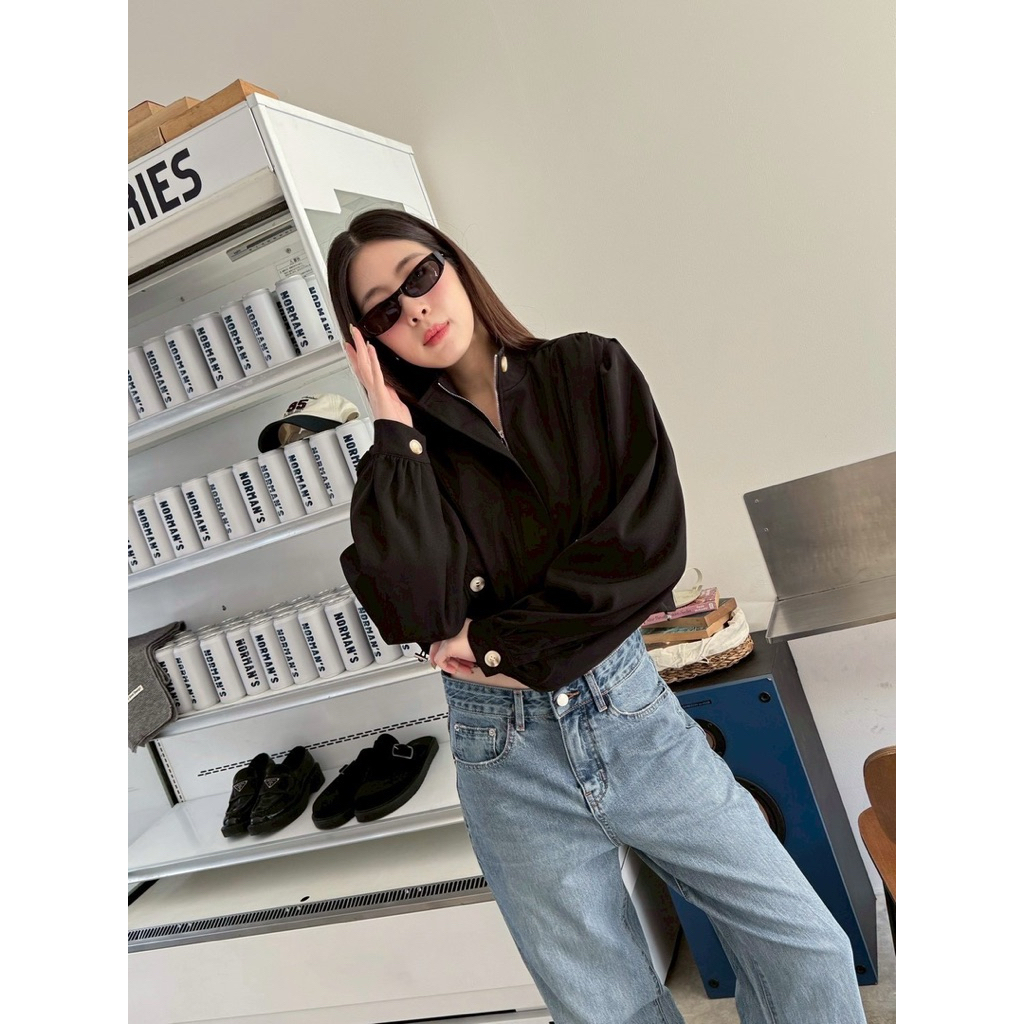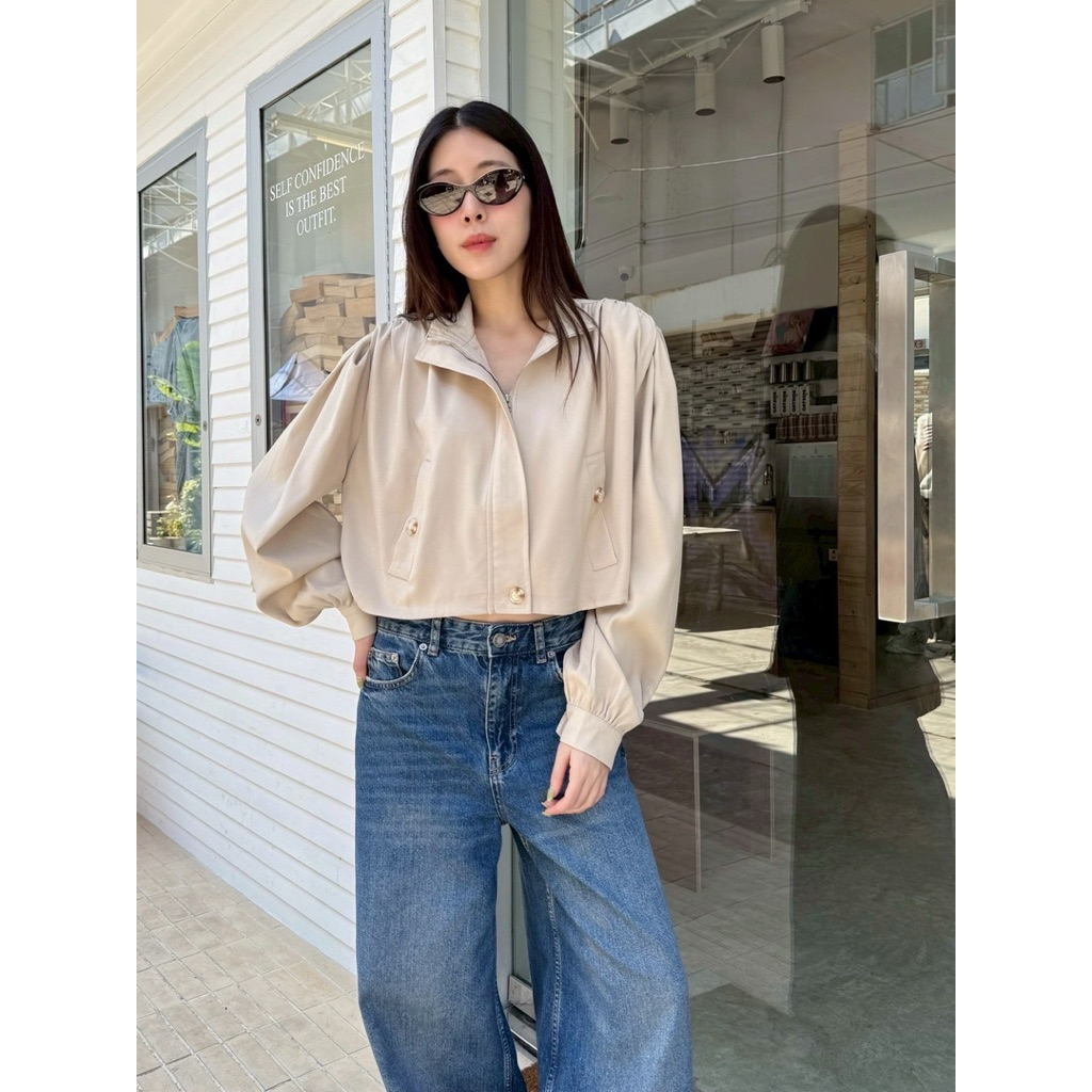Basic jacket🤍🖤 เสื้อคลุมแจคเกตทรงครอป คอสูง ผ้าดีมากกกก ดีเทลแต่งซิปสีเงินใช้งานได้จริง