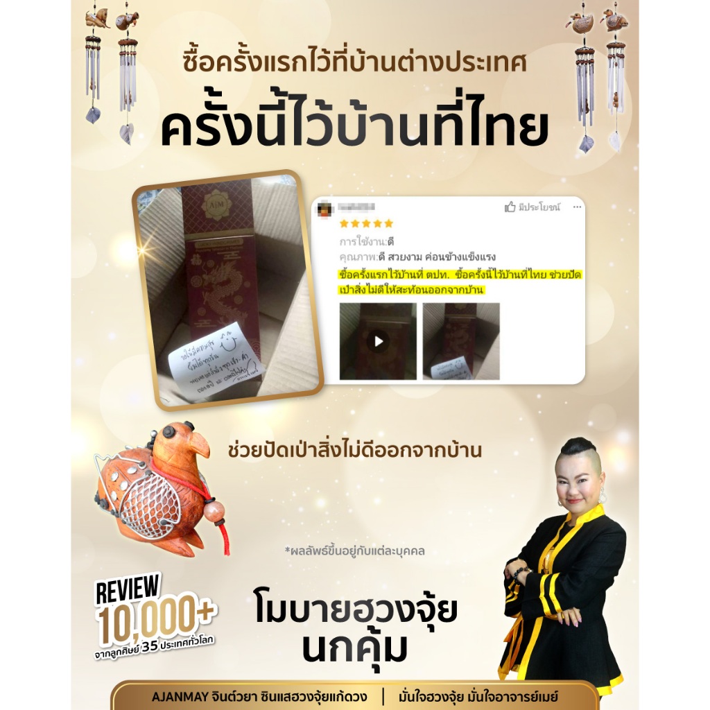 AJANMAY โมบายฮวงจุ้ยนกคุ้ม 1 ชุด แก้ฮวงจุ้ย ใกล้บ้านร้าง มีวิญญาณ กระดิ่งลม
