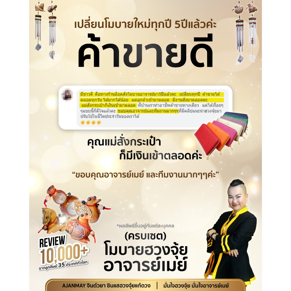 AJANMAY โมบายฮวงจุ้ย ม้า ของแท้ 100% กระดิ่งลมมงคล เสริมการงาน ก้าวหน้า เจ้านายรัก (ม้า)