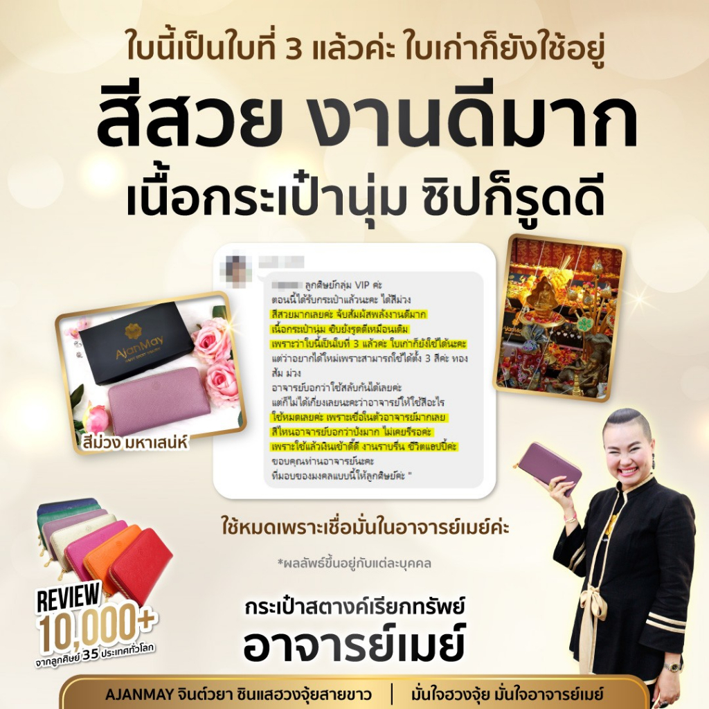 AJANMAY กระเป๋าสตางค์เรียกทรัพย์ ใบยาวผู้หญิง สีแดง ของแท้ 100% เสริมดวง เงินเข้าไม่ขาด