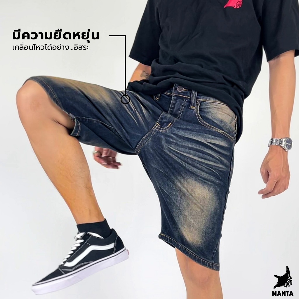 ยีนส์ขาสั้น MANTA DENIM รุ่น KK01 กระเป๋าลับข้างหลัง