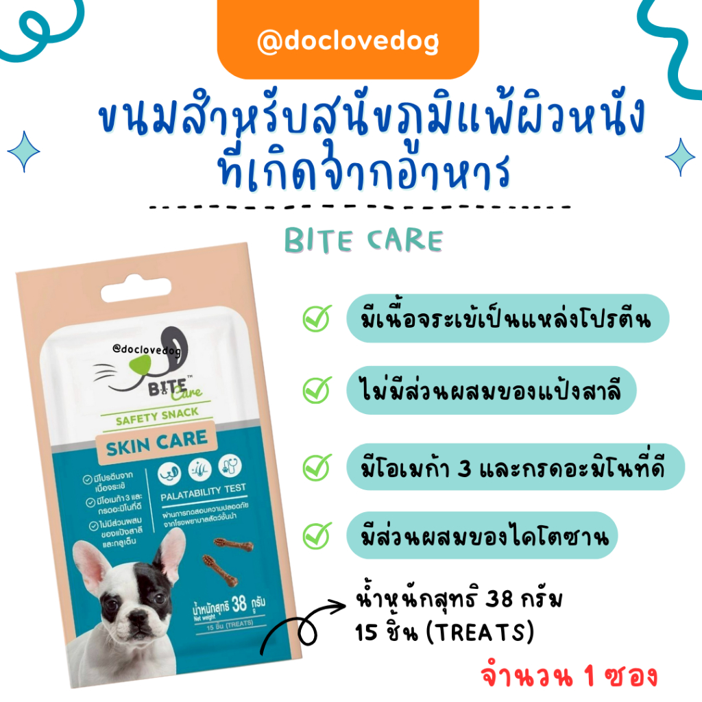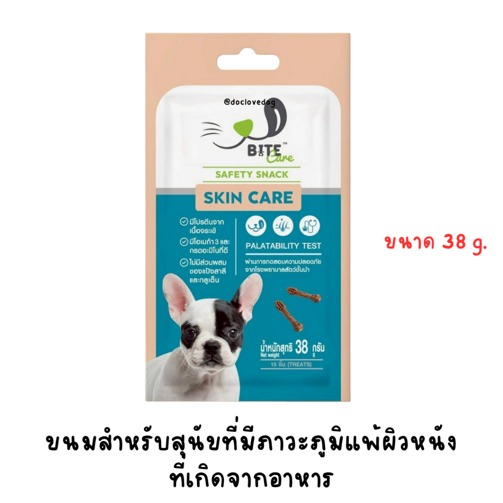 Bite Care Skin Care DOG 38g ขนมสำหรับสุนัขที่มีภาวะภูมิแพ้ผิวหนังที่เกิดจากอาหาร หมดอายุ 2026