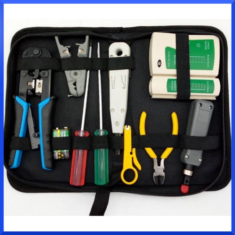 KONY ชุดกระเป๋าเครื่องมือติดตั้งสาย LAN คีมเข้าหัวแลน RJ45 RJ11 พร้อมที่เทสสาย LAN ครบชุด รุ่น US-8030 ด้ามฟ้า พร้อมส่ง