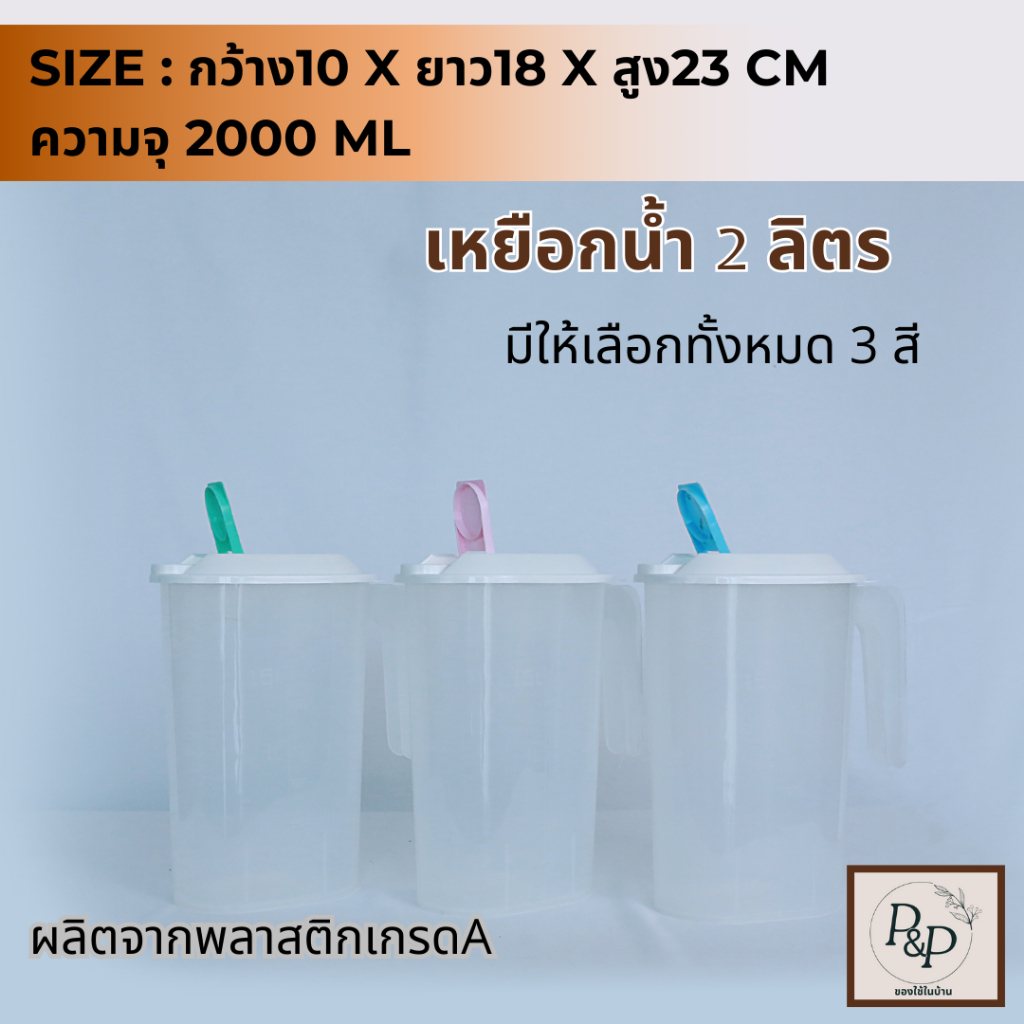 เหยือกน้ำ เหยือกน้ำพลาสติก กระบอกใส่น้ำ 2.0L มี3สีให้เลือก มีหูจับ มีฝาปิด พร้อมส่ง S0075