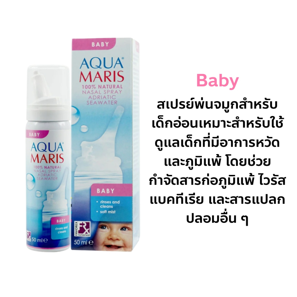 Aqua Maris Baby 50 ml. ของเเท้ 100% อควา มาริส เบบี้ สเปรย์ สำหรับพ่นล้างจมูกสำหรับเด็กอ่อน 50 มล.