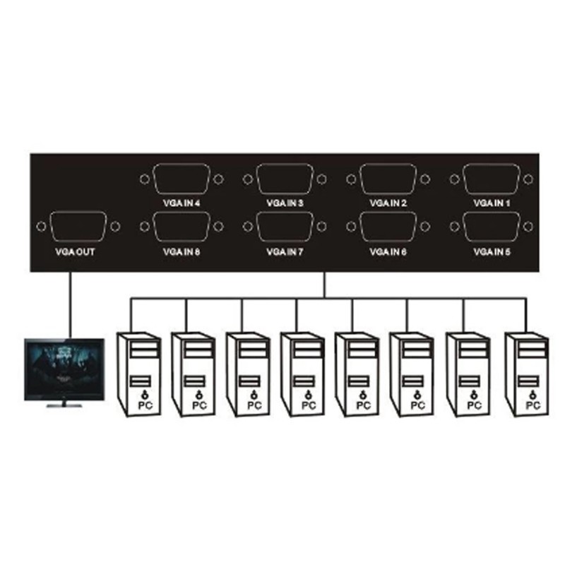 Switcher Selector Box VGA 8 Port Vga เข้า 8 ออก 1 จอ กดสลับเครื่อง