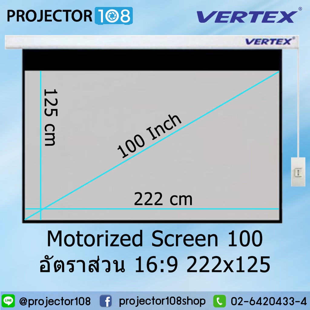 VERTEX Motorized Projection Screen 100 Inch อัตราส่วน 16:9 (222 x 125 cm.) MW *โปรดแจ้งเบอร์โทรทางช่องแชท*