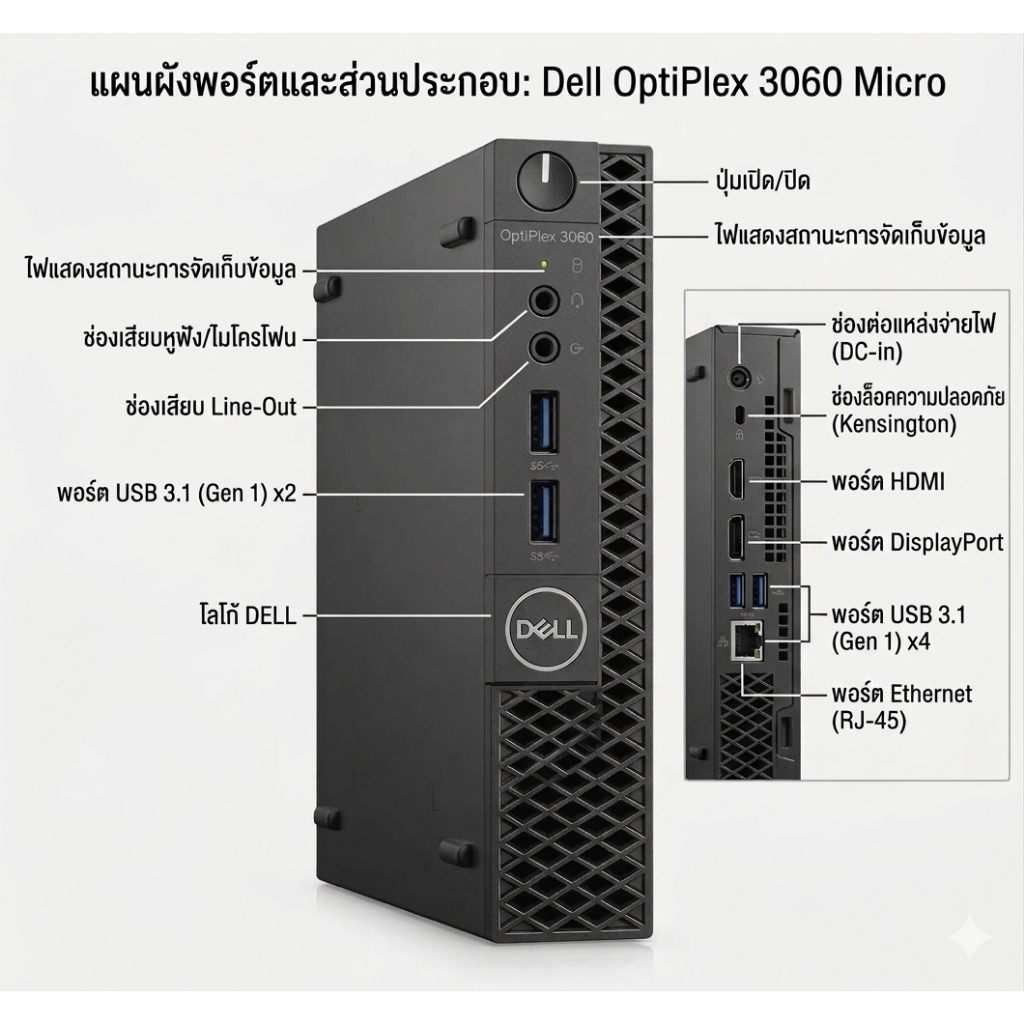 Mini PC Dell OptiPlex 3060 MFF CPU Core i5-8400T Max 3.30 GHz มีพอร์ต HDMI Wi-Fi +Bluetooth ในตัว