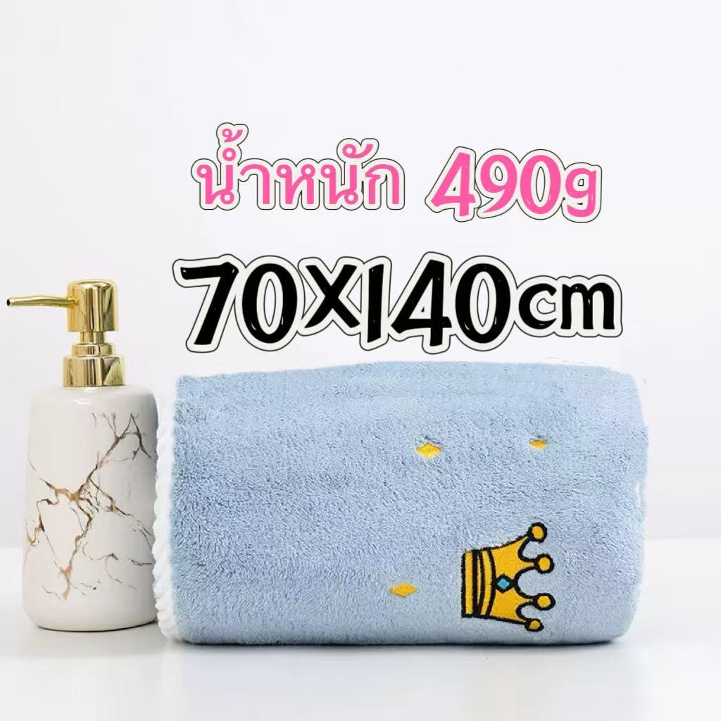 ผ้าเช็ดตัวขนแกะปะการัง ผ้าเช็ดตัวลายมงกุฎ ขอบหนา ดูดซับน้ำได้ดี ผ้าเช็ดตัวเนื้อนุ่ม หนา ดูดซับน้ำได้ดี ผืนใหญ่ ขนาด 70X1