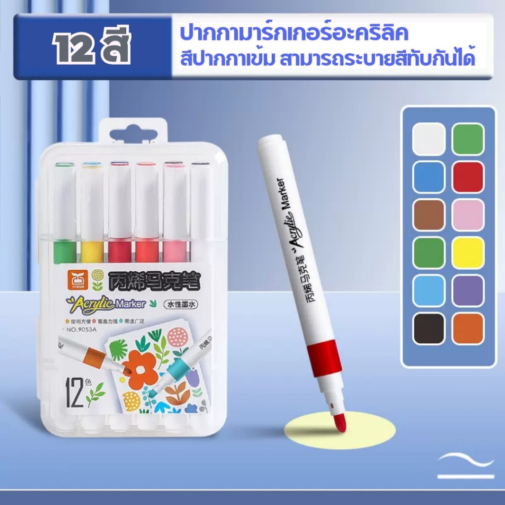[ร้านคนไทย ราคาดี] ปากกาอะคริลิค Acrylic Marker Pen หมึกกันน้ำ เขียนได้ทุกพื้นผิว สีสวยสดใส มีให้เลือกตั้งแต่ 12 - 72 สี