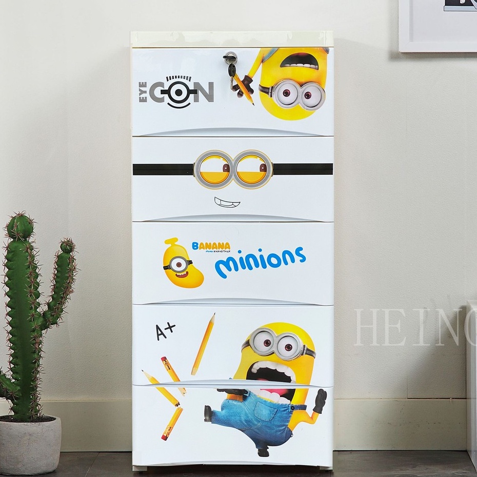 HEINOเพิ่มหนาลิ้นชักเก็บของลายการ์ตูนตู้เสื้อผ้าตู้เก็บของแบบหลายชั้น สามารถล็อคได้ พร้อมล้อเลื่อน5ชั้น4ชั้น3ชั้น