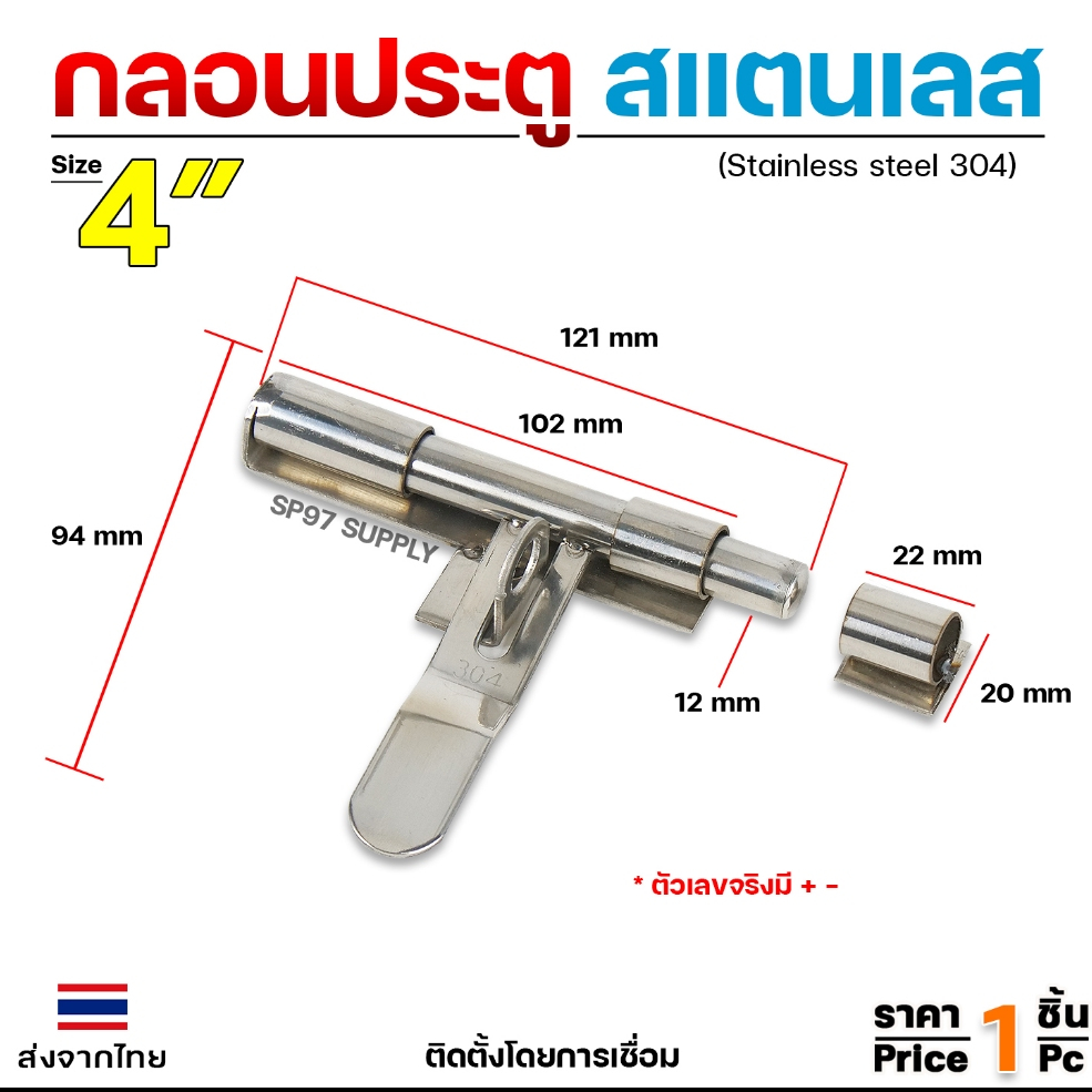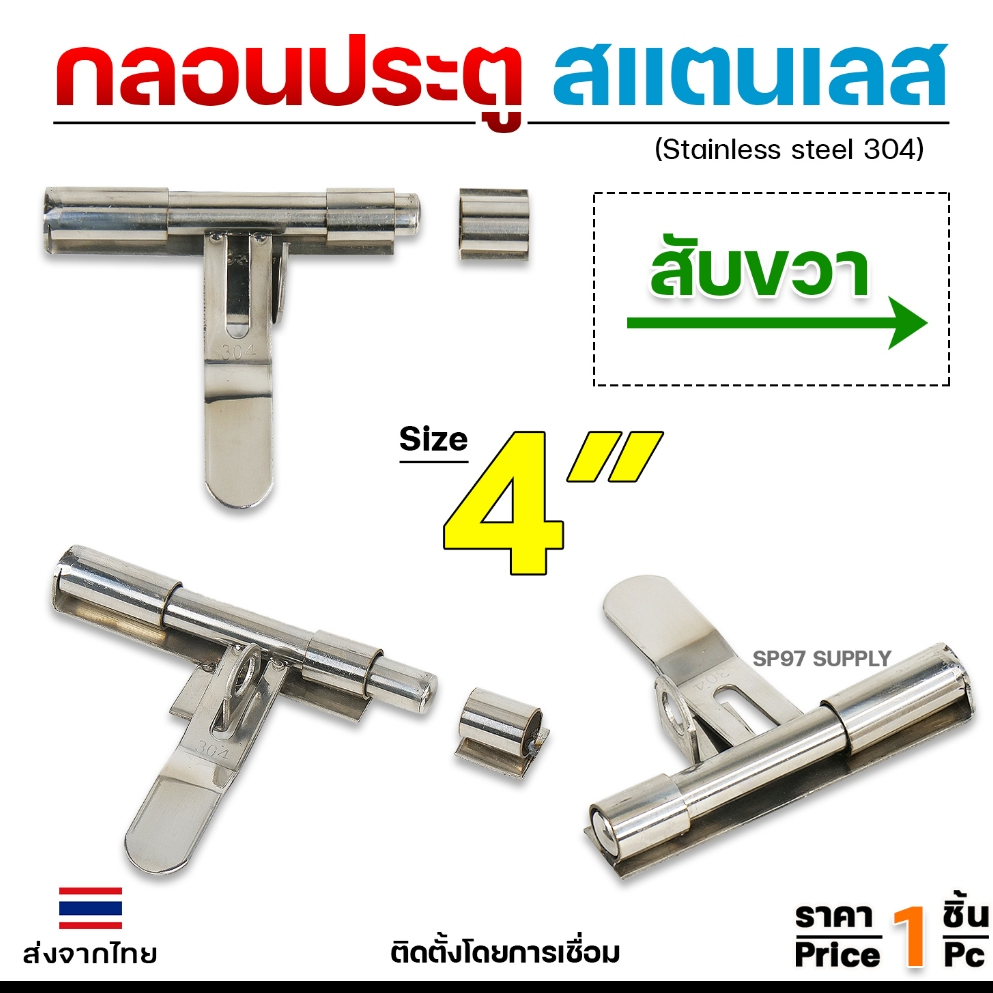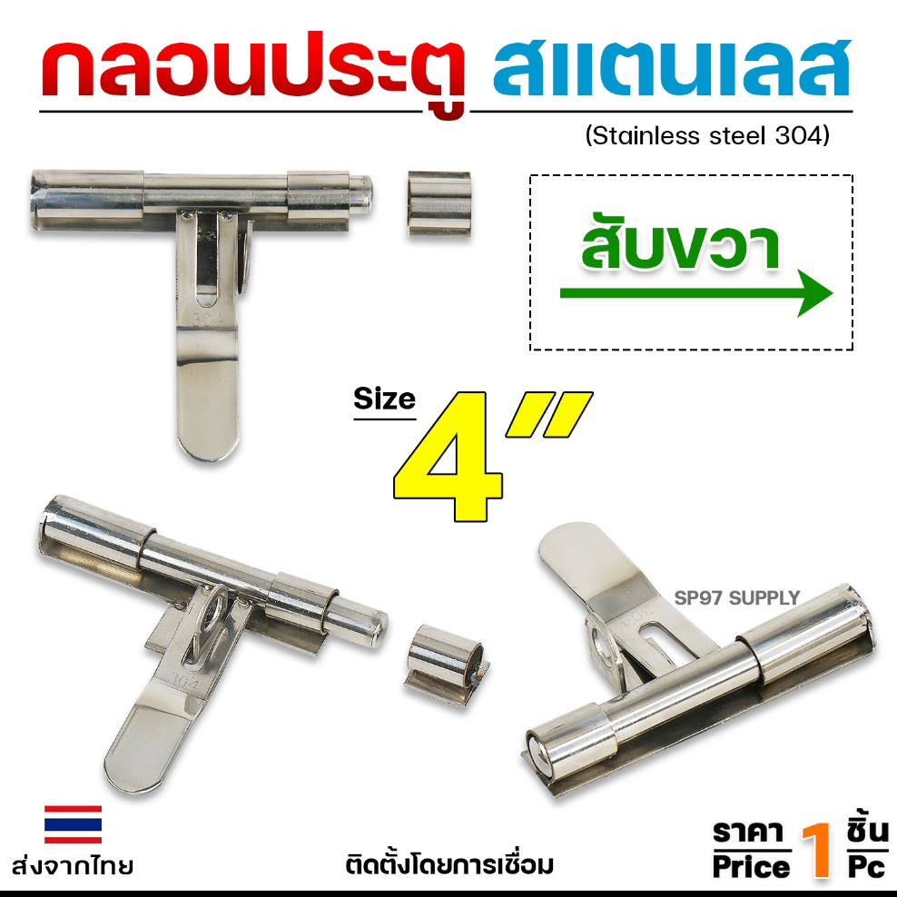 กลอนขวาง 4" สามารถคล้องกุญแจล็อคได้ ผลิตจาก สแตนเลส เกรด 304 #กลอนประตู #กลอนลงพื้น #กลอนสแตนเลส